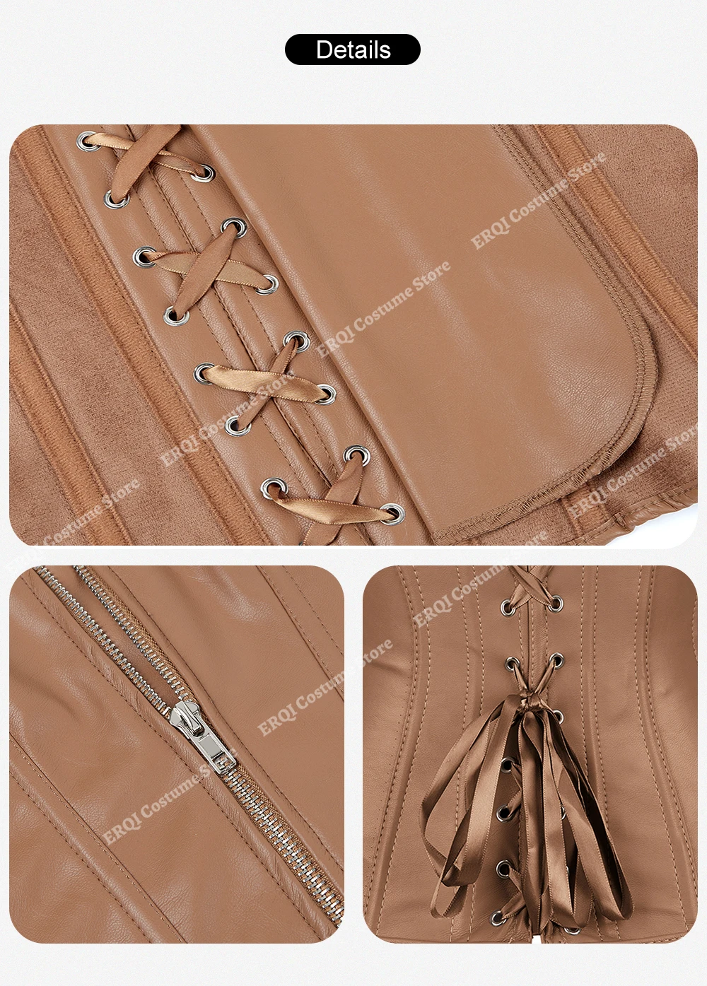 Корсет из мягкой искусственной кожи с открытыми плечами, подкладка из спандекса, удобная корректирующая одежда для женщин. Сексуальные корсеты с молнией спереди легко одеваются.