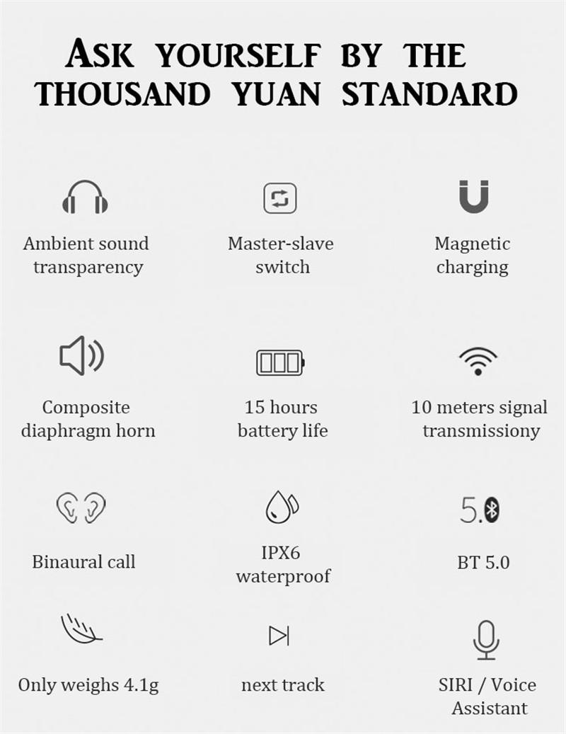 3: внешний вид изысканный, продукт ультра-светильник, вес одного наушника только 5g, И дизайн на ухе делает ушной канал безболезненным после ношения в течение дня;