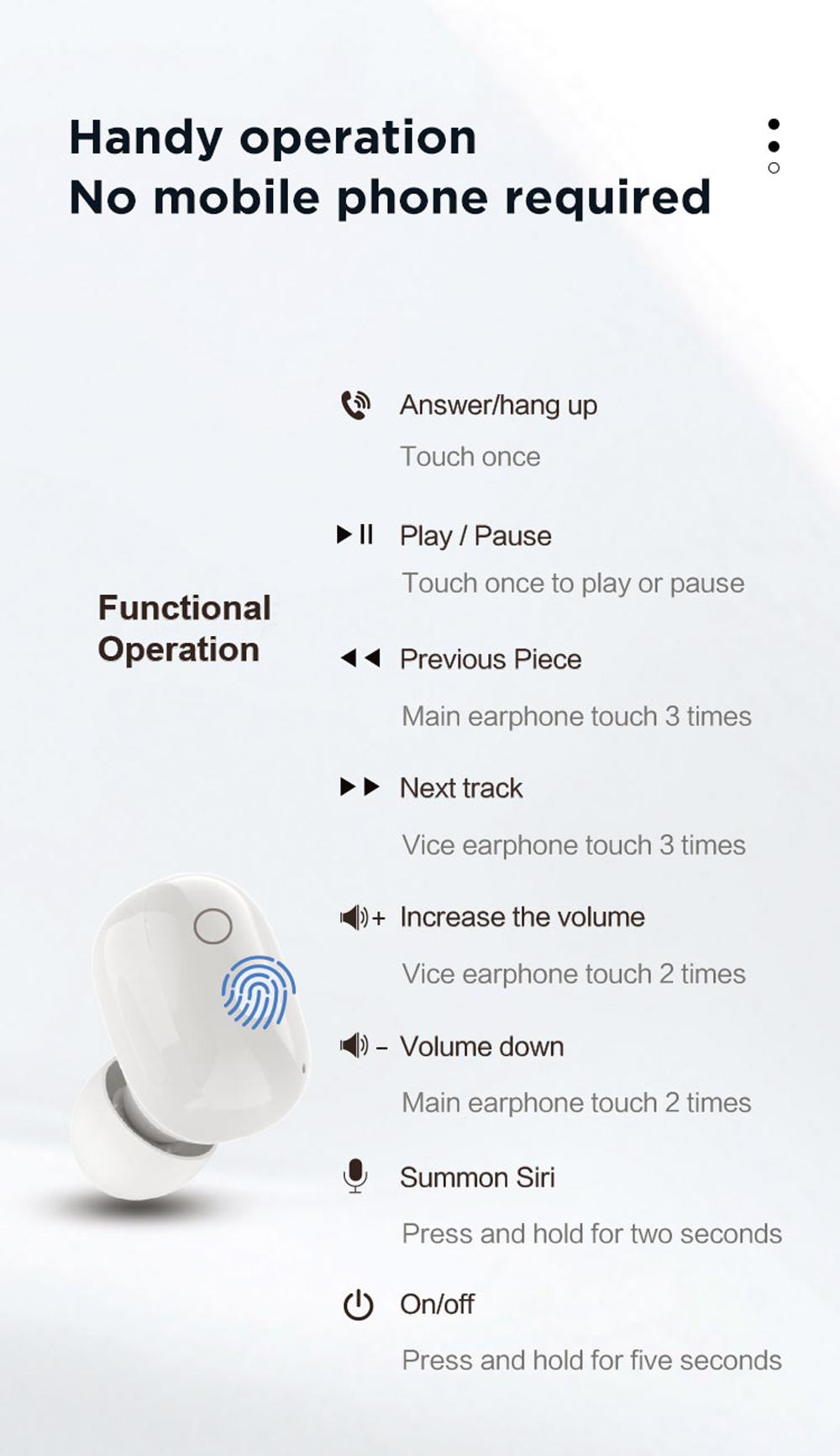 2: изысканный внешний вид, ультра-светильник, один наушник весит всего 5g, а дизайн «близко к уху» делает слуховой канал безболезненным после ношения в течение дня;