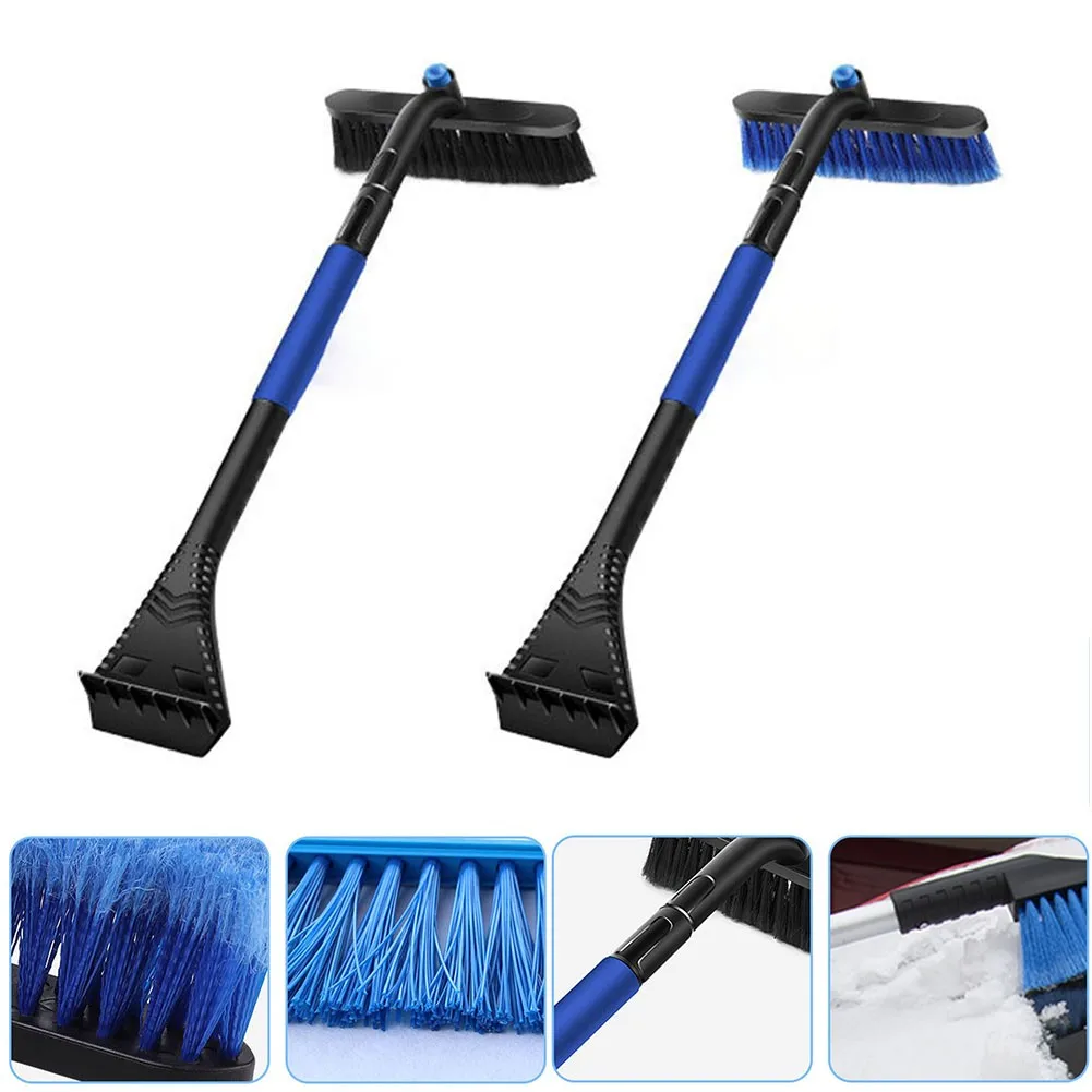 1、4-in-1 Design: This multi-functional telescopic ice and snow shovel is easy to cleanup snow and will not damage the car paint.
