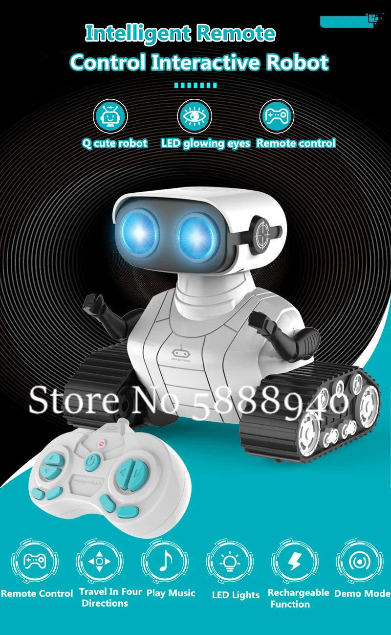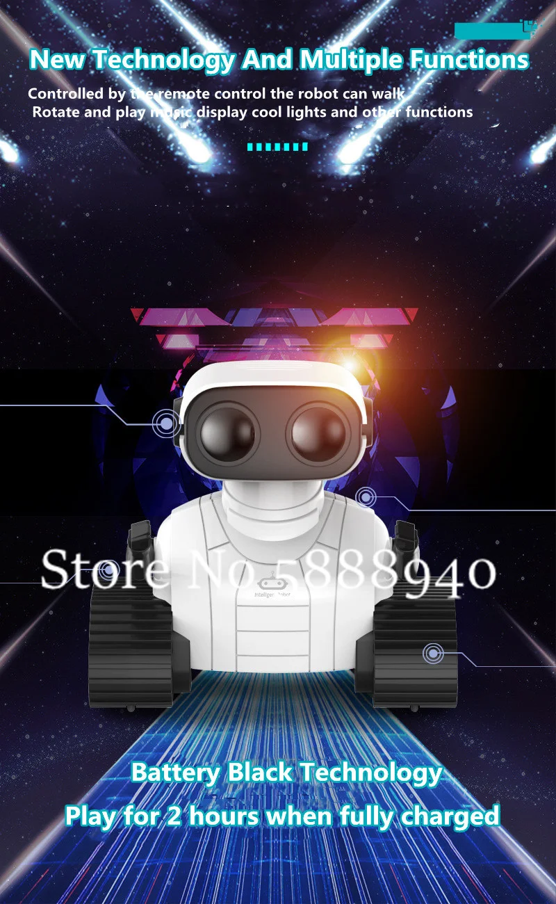 Новая технология и множество функций, управляемых пультом дистанционного управления; Робот может ходить, вращать и воспроизводить музыку, отображать крутые огни и другие функции