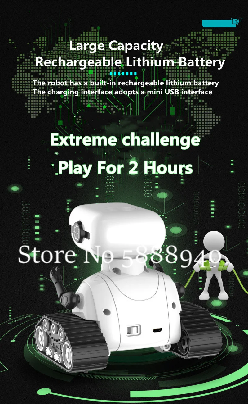 Язык и Музыка игрового автомата: головка робота оснащена динамиком, робот будет издавать машинный язык при управлении роботом и может воспроизводить музыку в соответствии с действиями робота