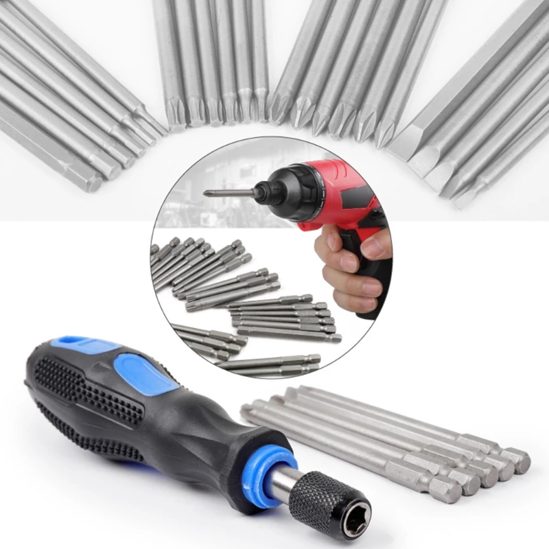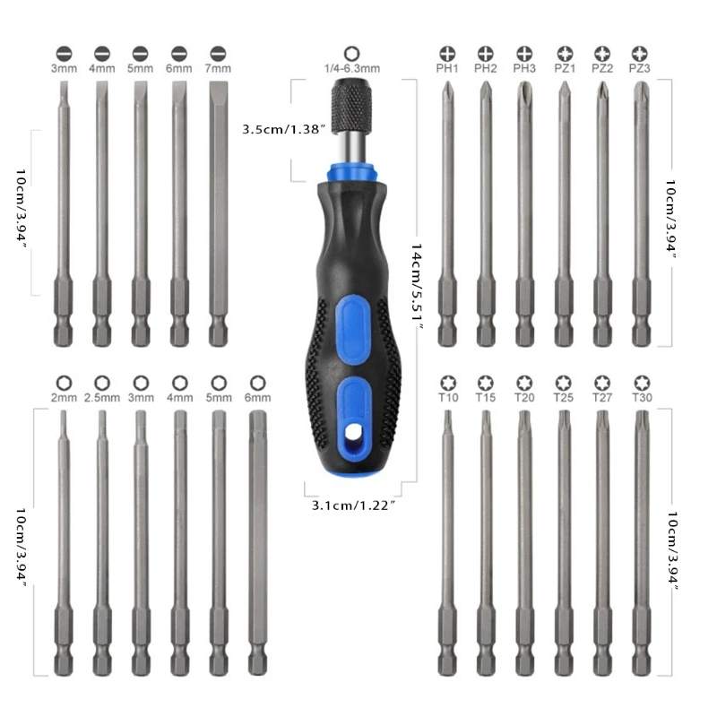 Посылка включает в себя: 5 шт. 3-7 мм биты, 5 шт. 2-6 мм биты, 3 шт. PH1-PH3 биты, 3 шт. PZ1-PZ3 биты, 6 шт. T10-T30 биты.