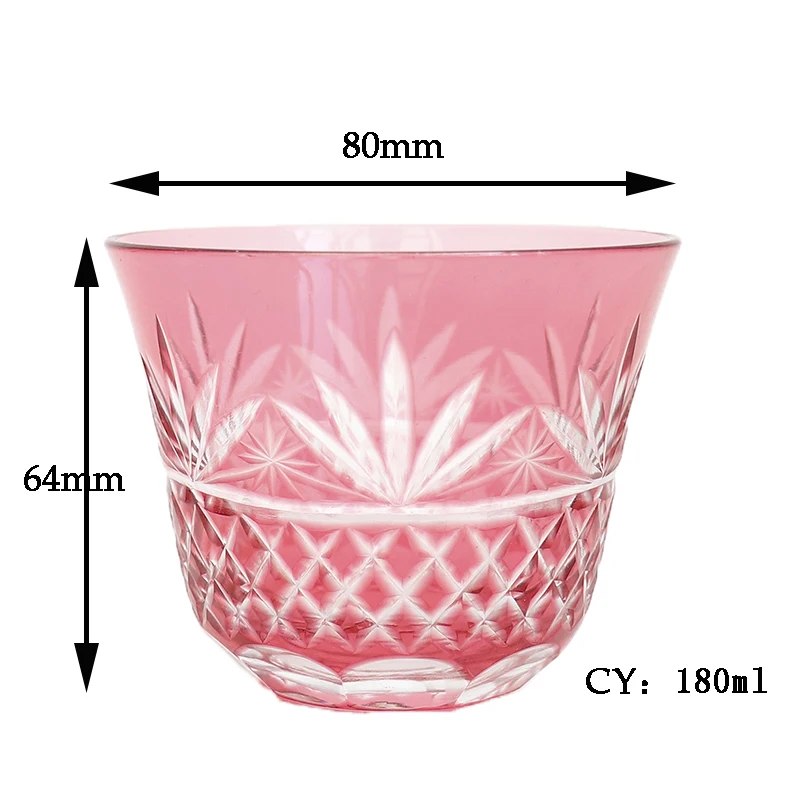 Порезная прозрачная стеклянная посуда создана из отборного, чистого сырья с помощью изысканного дизайна и настоящих методов ремесленника. Он известен высокой степенью прозрачности и блеска и может дать четкий звук.