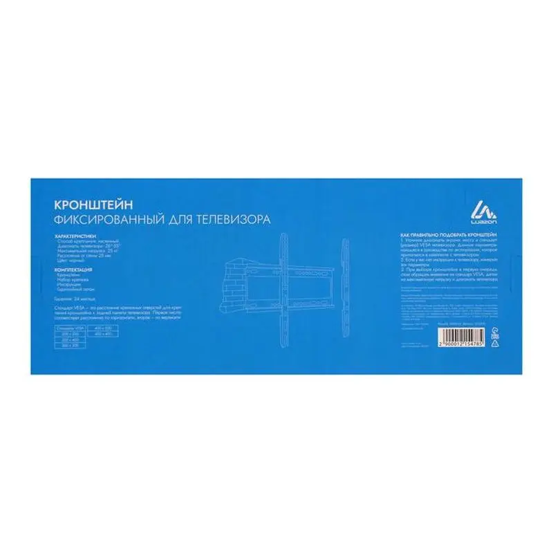 Кронштейн предназначен для крепления на стену большинства плоских телевизоров с диагональю от 26 до 55 дюймов. Данная модель выдерживает нагрузку весом до 25 кг, имеет фиксирующий механизм, с помощью которого надёжно удерживает телевизор.