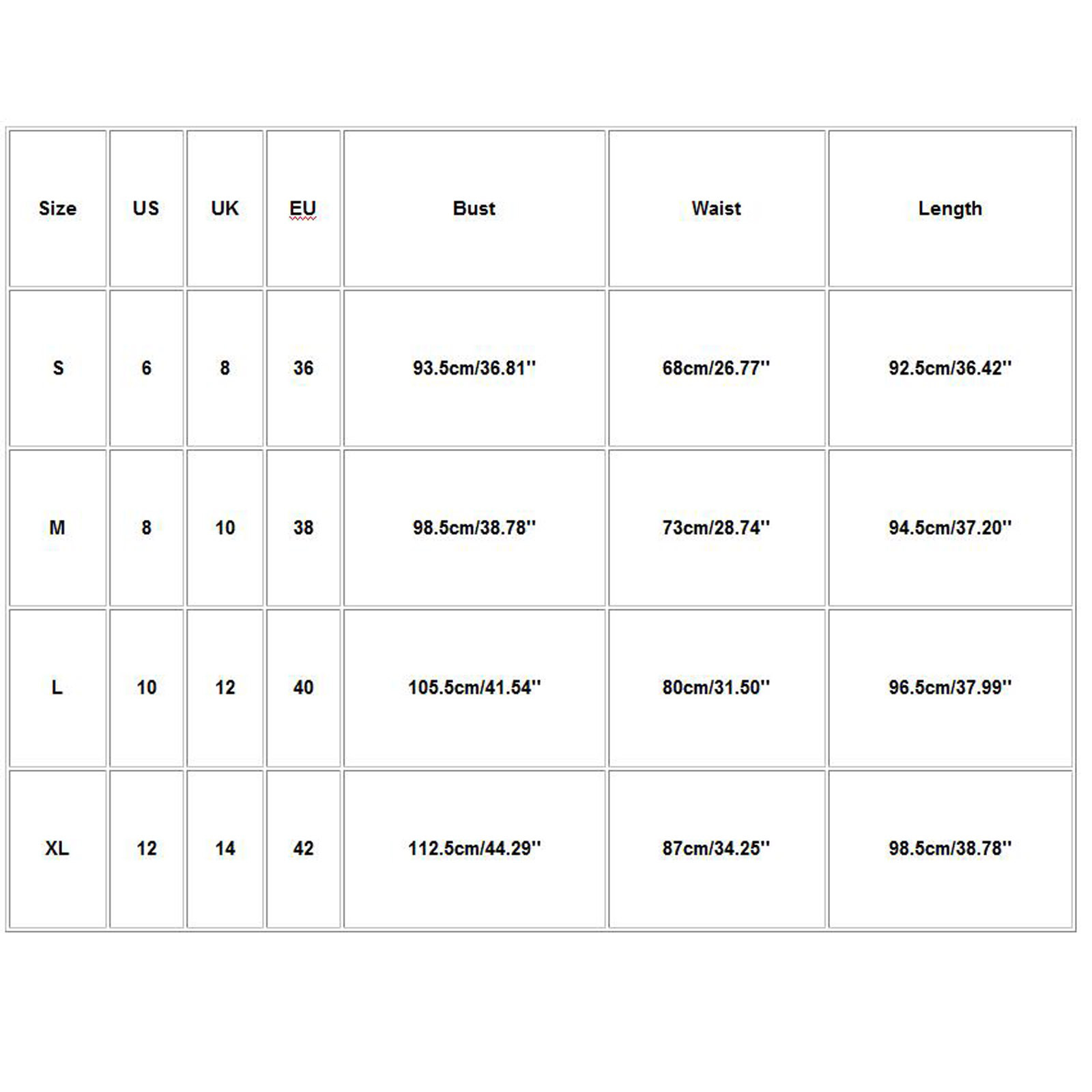 Размеры США Великобритания ЕС Бюст Талия Длина S 6 8 36 93,5 см/36,81'' 68 см/26,77'' 92,5 см/36,42'' М 8 10 38 98,5 см/38,78'' 73 см/28,74'' 94,5 см/37,20'' L 10 12 40 105,5 см/41,54'' 80 см/31,50'' 96,5 см/37,99'' XL 12 14 42 112,5 см/44,29'' 87 см/34,25'' 98,5 см/38,78''