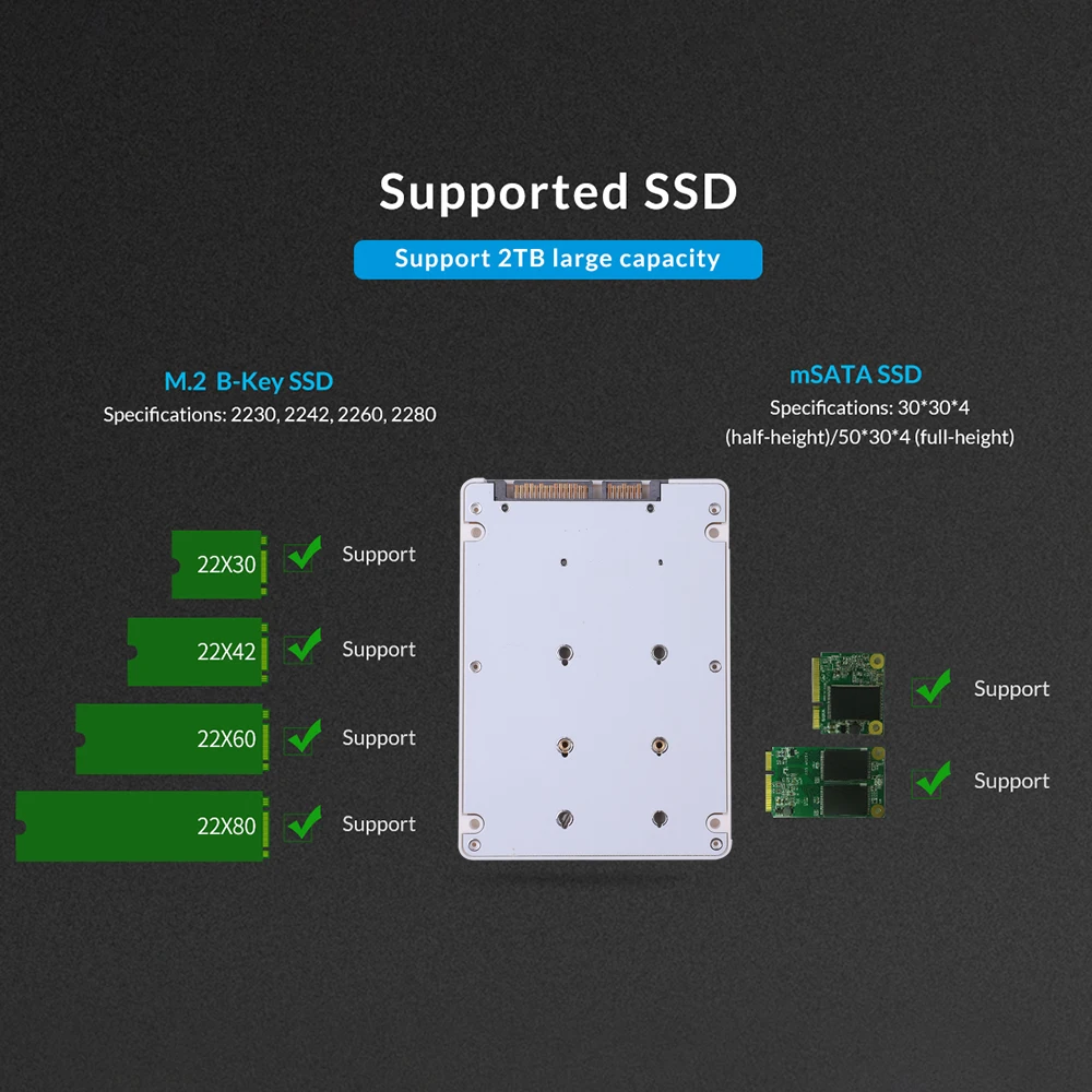 Этот конвертер работает с mSATA SSD, он может быть преобразован в SATA III SSD, а затем вы можете вставить его на свой компьютер. Он изготовлен из высококачественного алюминиевого сплава с функцией рассеивания тепла. Высокий блеск с обеих сторон и пескоструйная окраска, цвет не будет выцветать, как проходит время. Он был строго протестирован, чтобы быть прочным и стабильным. С широкой совместимостью, он может хорошо сочетаться с различными системами.