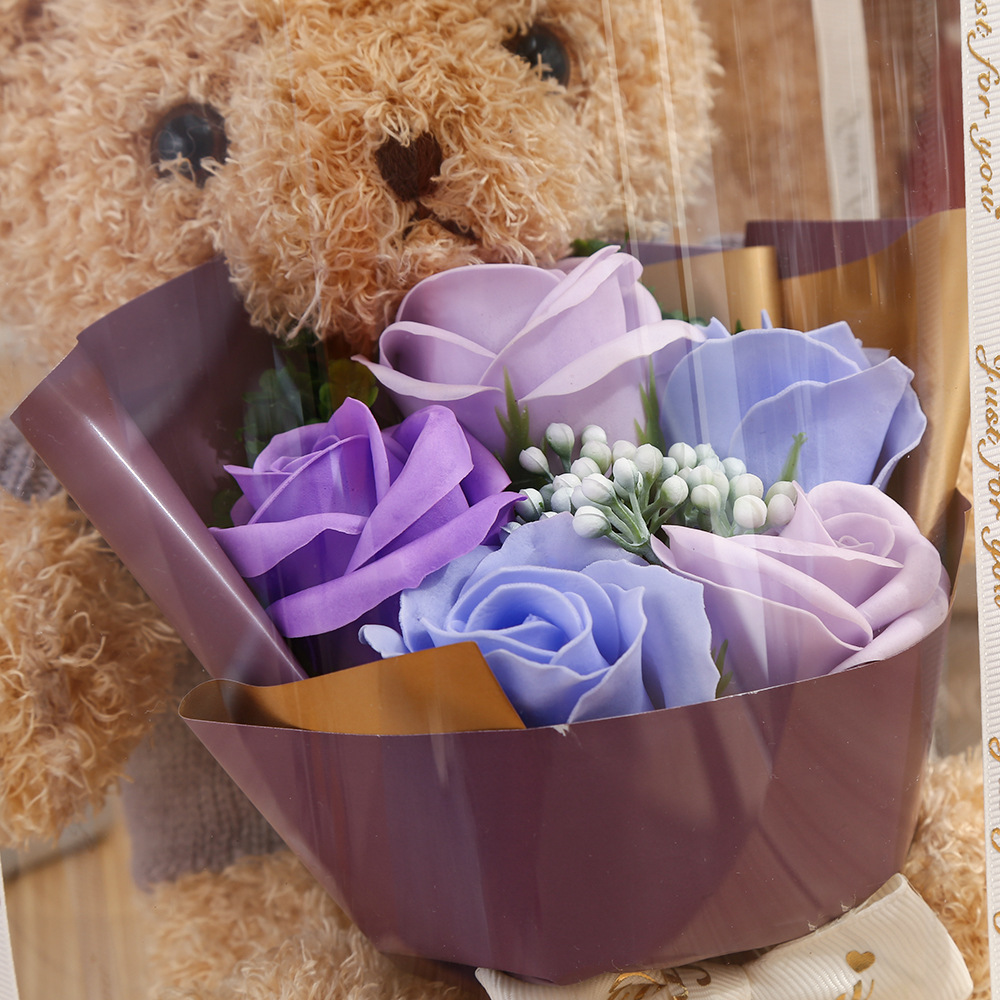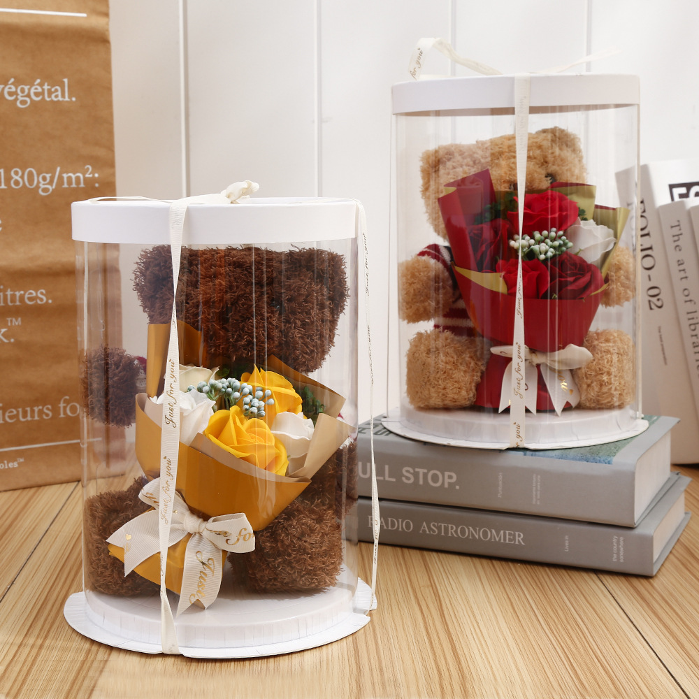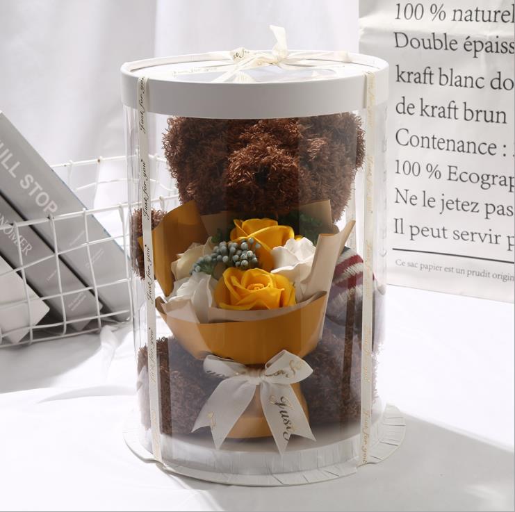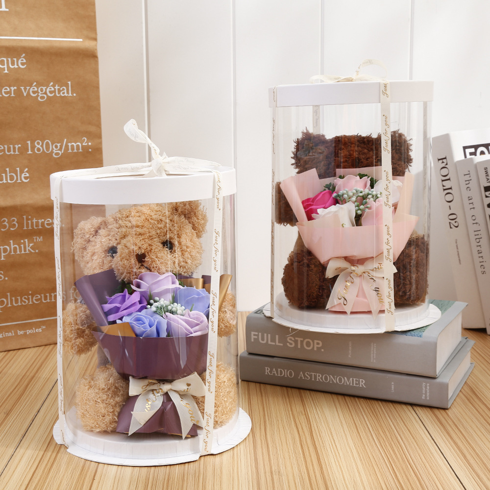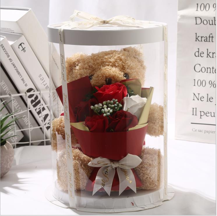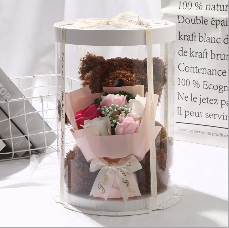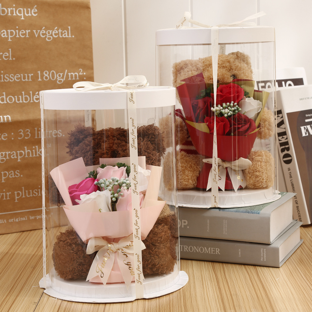Розовый медведь, кукла, Подарочная коробка, искусственное мыло, цветок розы, плюшевый медведь, подарок