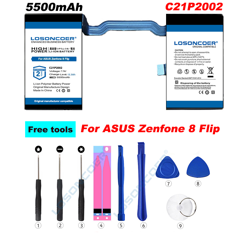 Аккумулятор LOSONCOER 7000 мАч C21P2001 для ASUS ROG Phone 5,5S Pro ZS673KS I005DA I005DB/ C21P2002 для ASUS Zenfone 8 Flip Battery