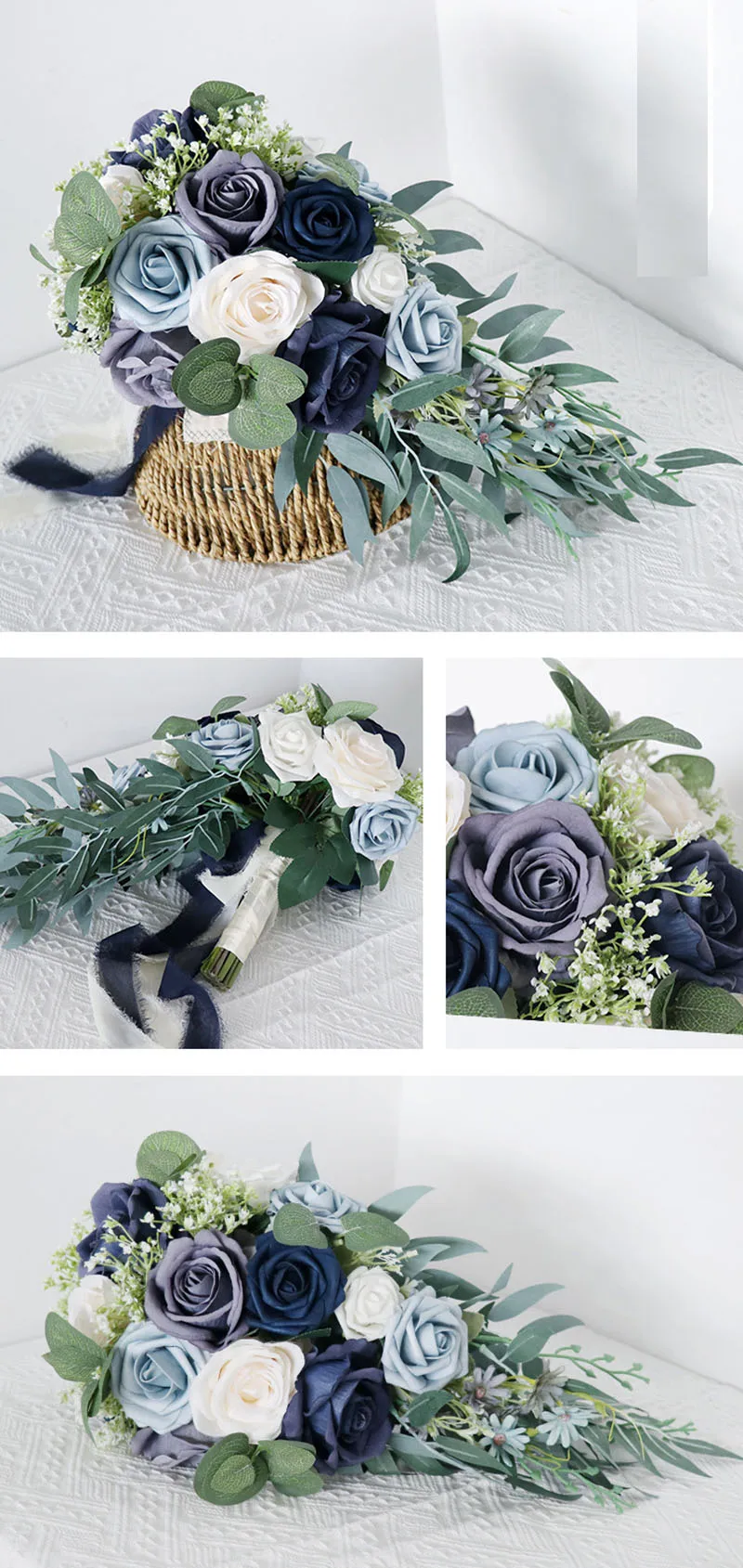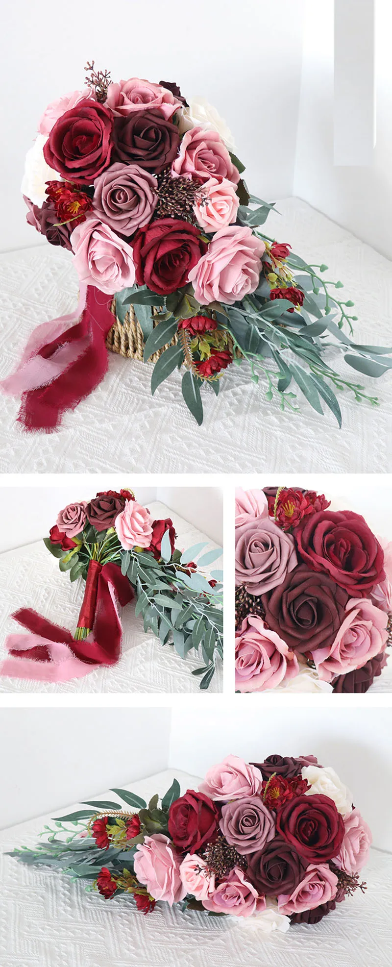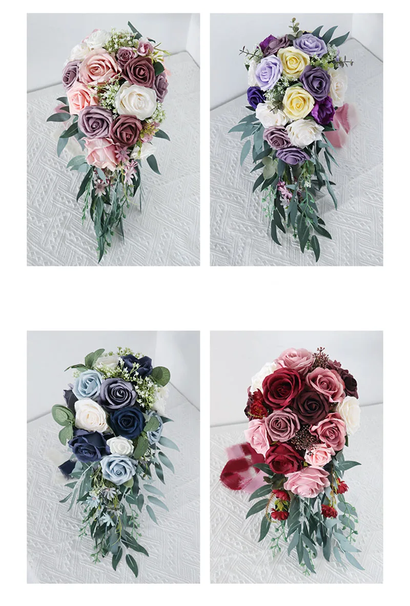 NZUK роскошные свадебные букеты с водопадом, искусственные темно-красные шелковые розы, Калла, лилия, настоящее прикосновение, свадебные цветы, букет de mariage grand