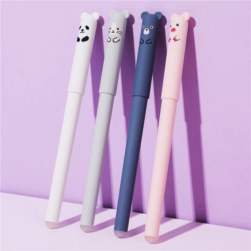 36 шт./компл., забавные стирающиеся ручки, милая панда, кошка, медведь, Свинка каваи, пишущая синяя моющаяся ручка, гелевая ручка, школьная крутая канцелярская вещь 2022