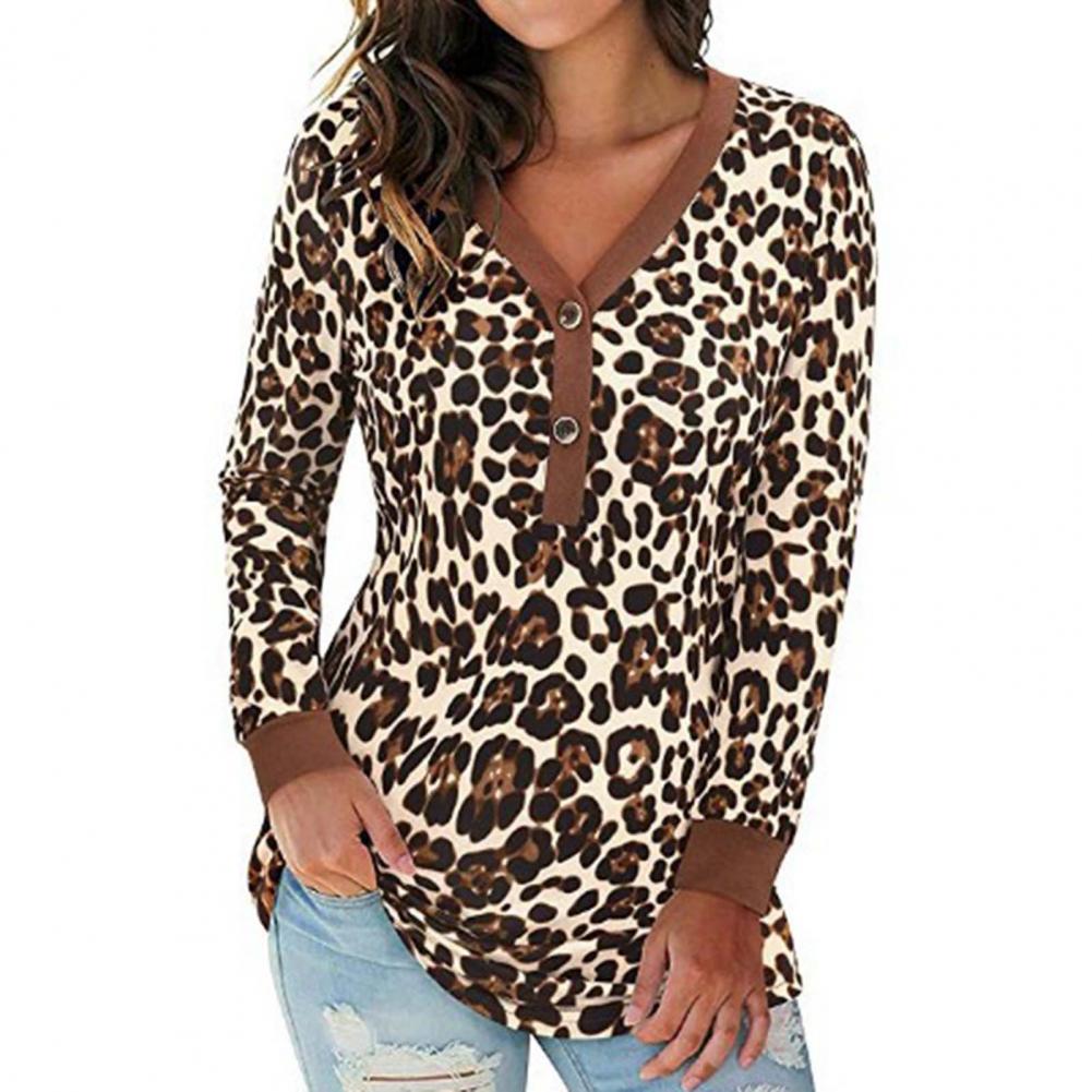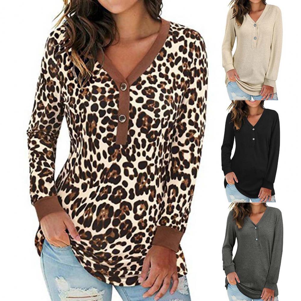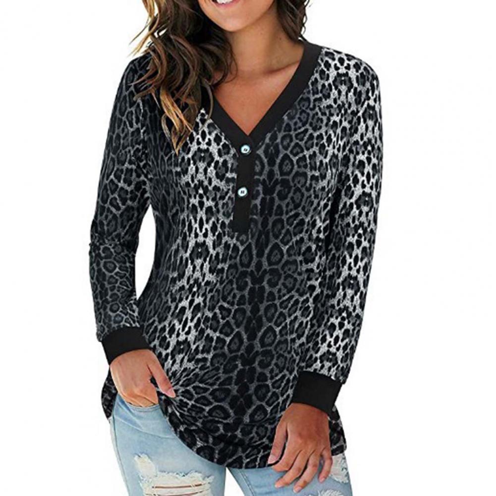 Вы носите эту свободную блузку с однотонным леопардовым принтом, v-образным вырезом и длинными рукавами, чтобы быть более красивой и очаровательной.