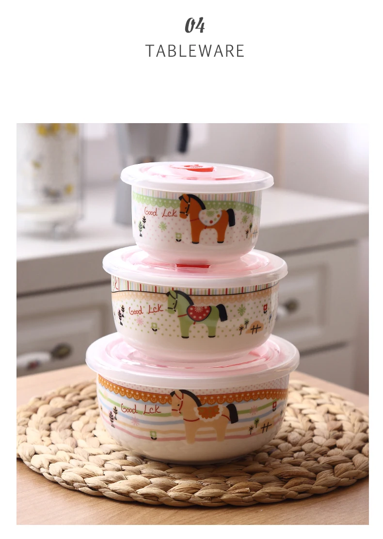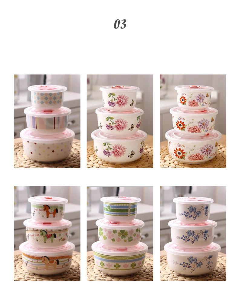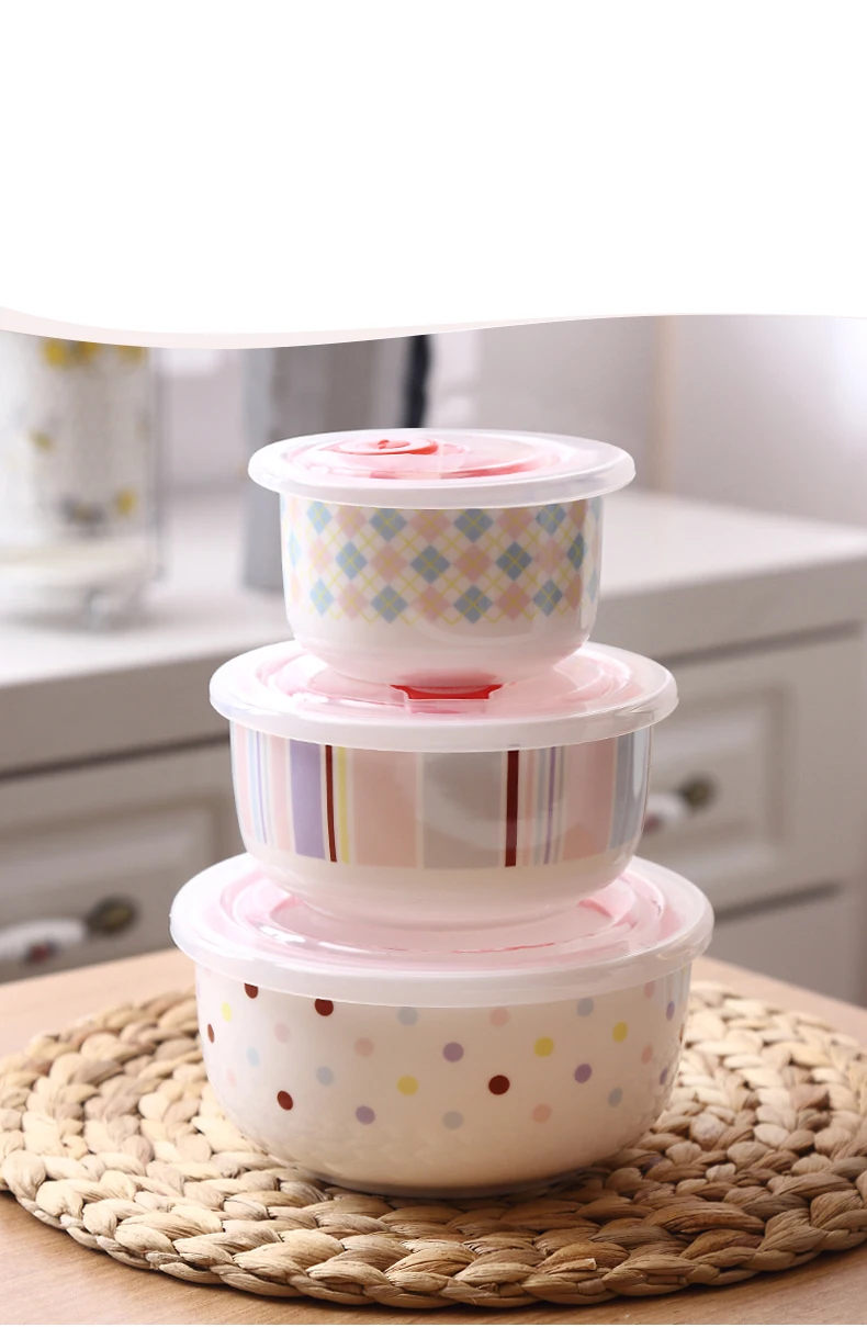 Трехсекционная керамическая чаша для свежести с крышкой, специальная чаша для микроволновой печи, бытовой Ланч-бокс, набор ланч-боксов