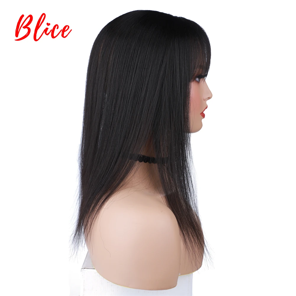 Blice для женщин Синтетические прямые накладные волосы Toppers с зажимы для челки в шиньон с натуральным черным парик для волос 16 дюймов