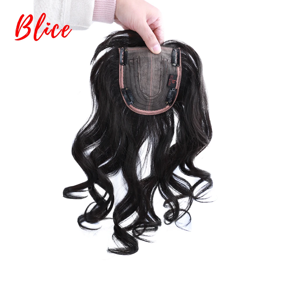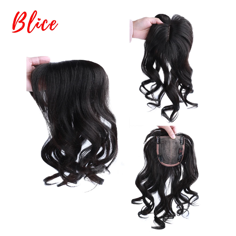 Blice For Women Synthetic Curly Hair Extensions Toppers With Bangs Clips In Hairpiece With Natural Black Hairline Wig 16Inch