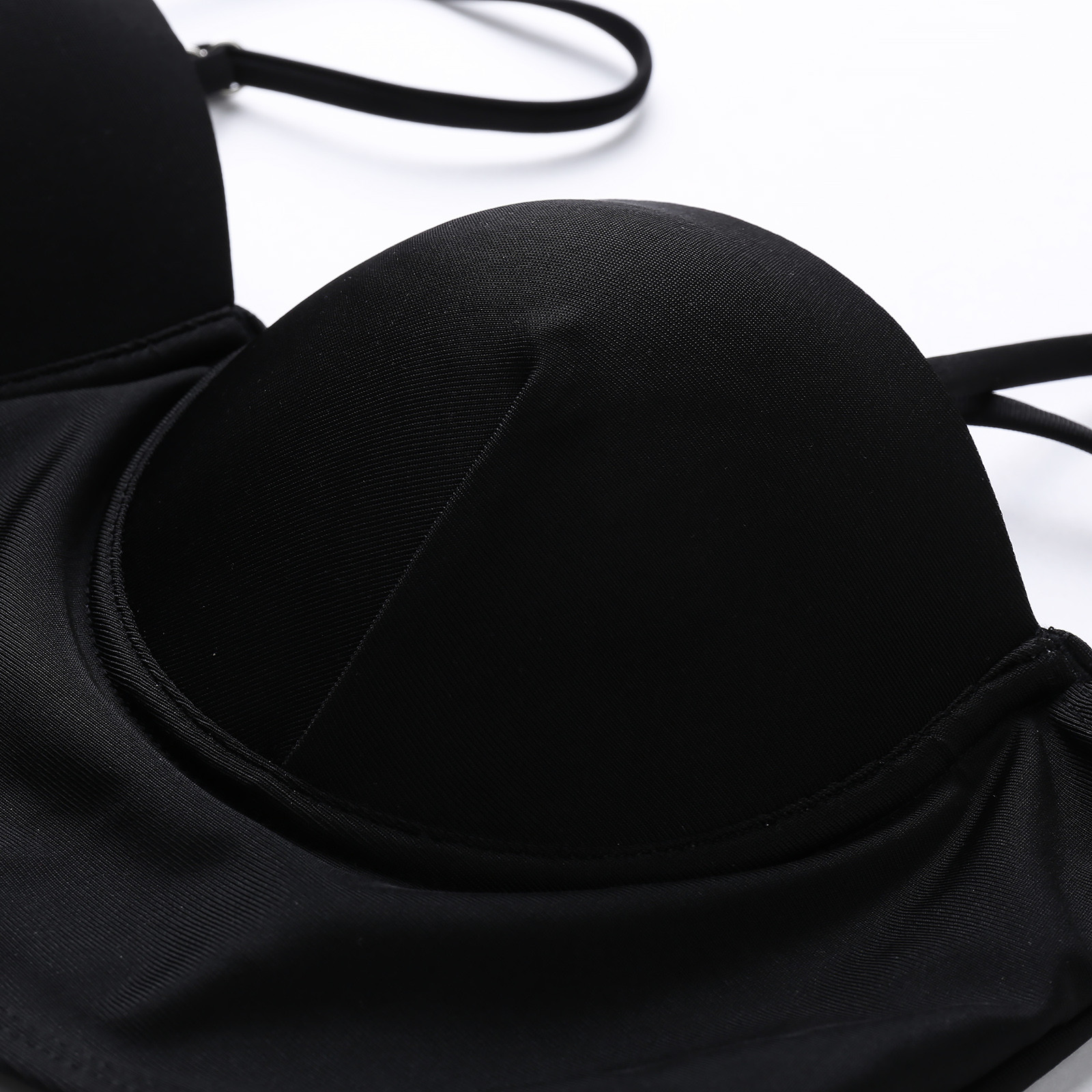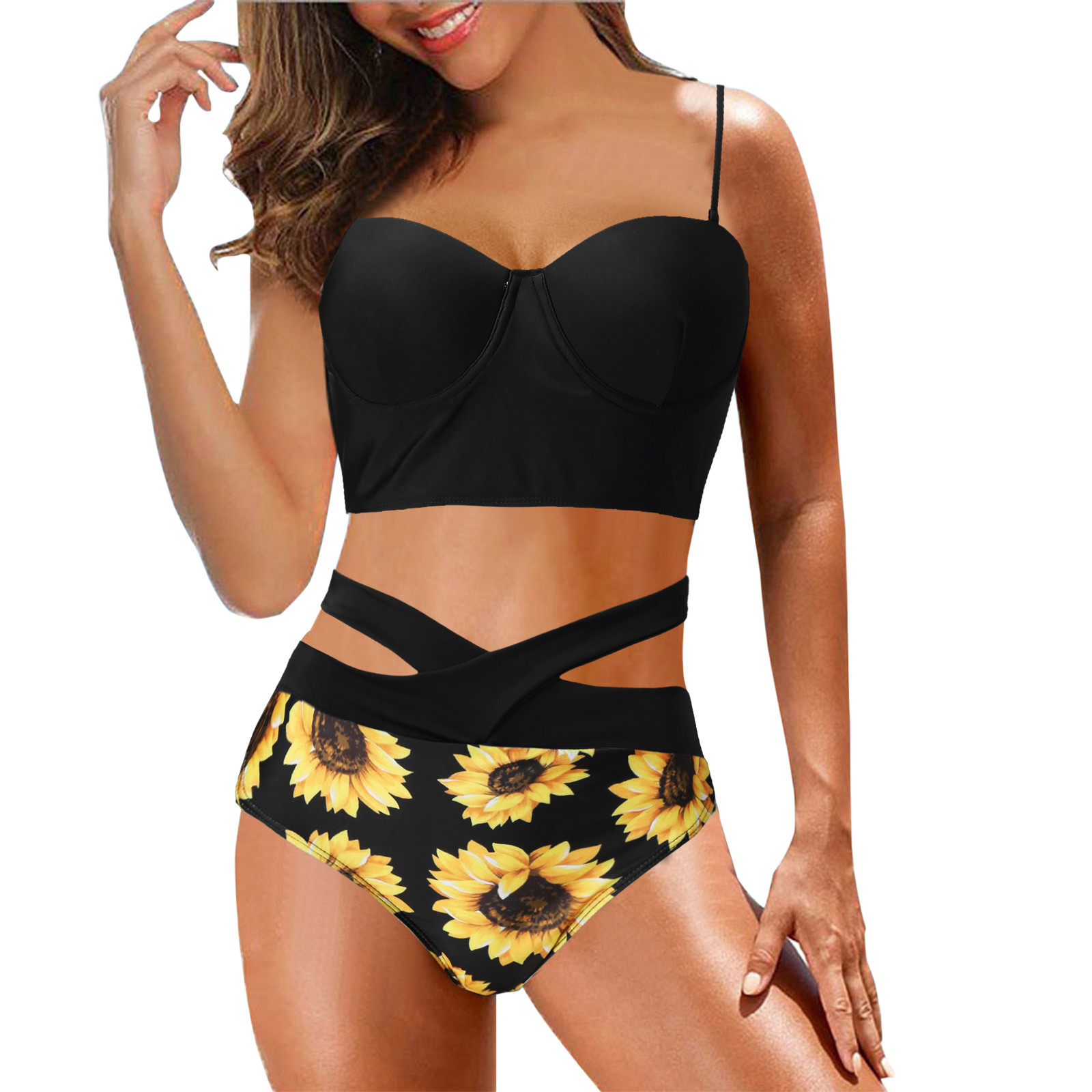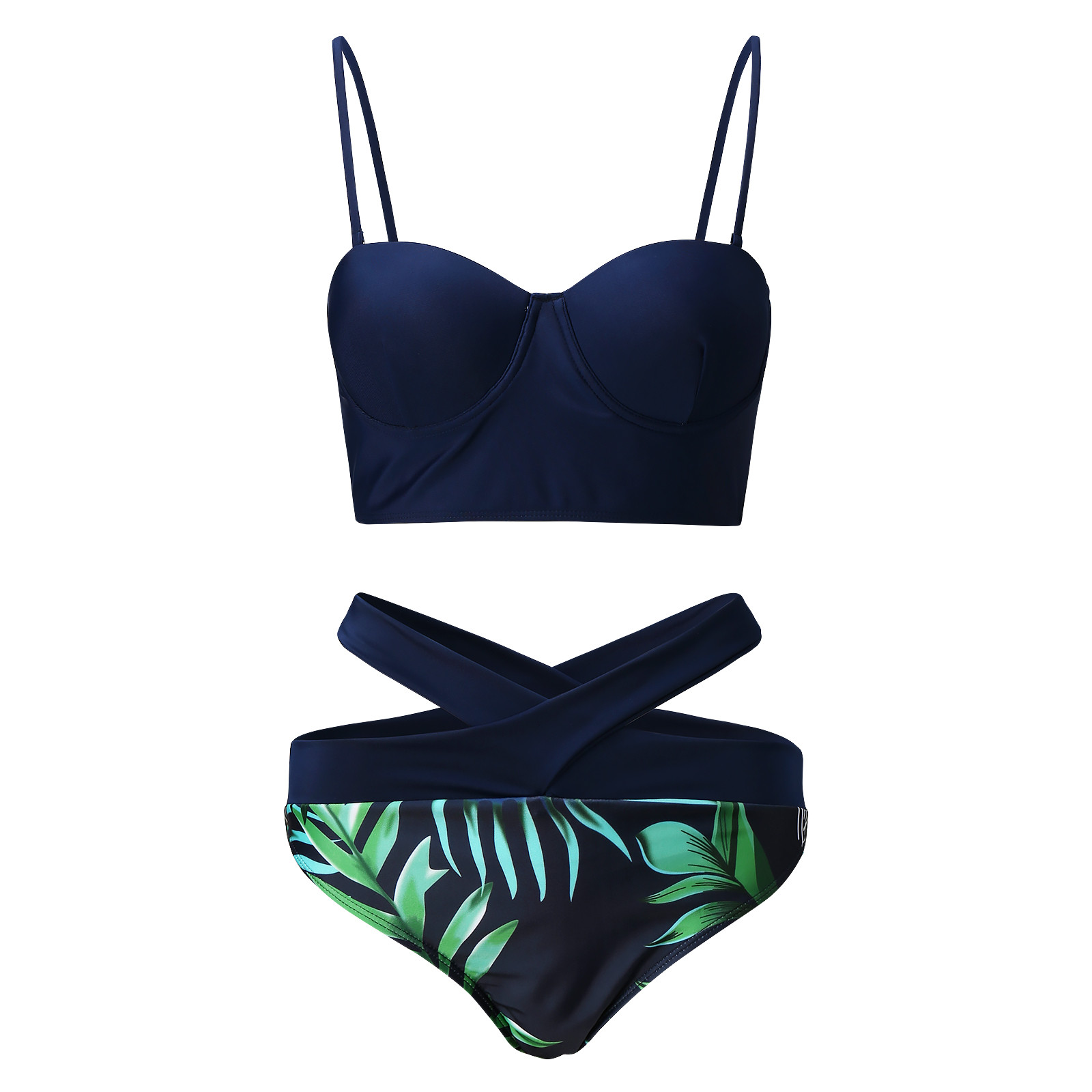 Женский купальник-бикини с обтекаемой подкладкой и завязками сбоку Верх: Широкие бретельки и жесткий топ-бикини, бюстгальтер пуш-ап, Классическая простота спереди, сексуальный v-образный вырез, регулируемые бретельки.