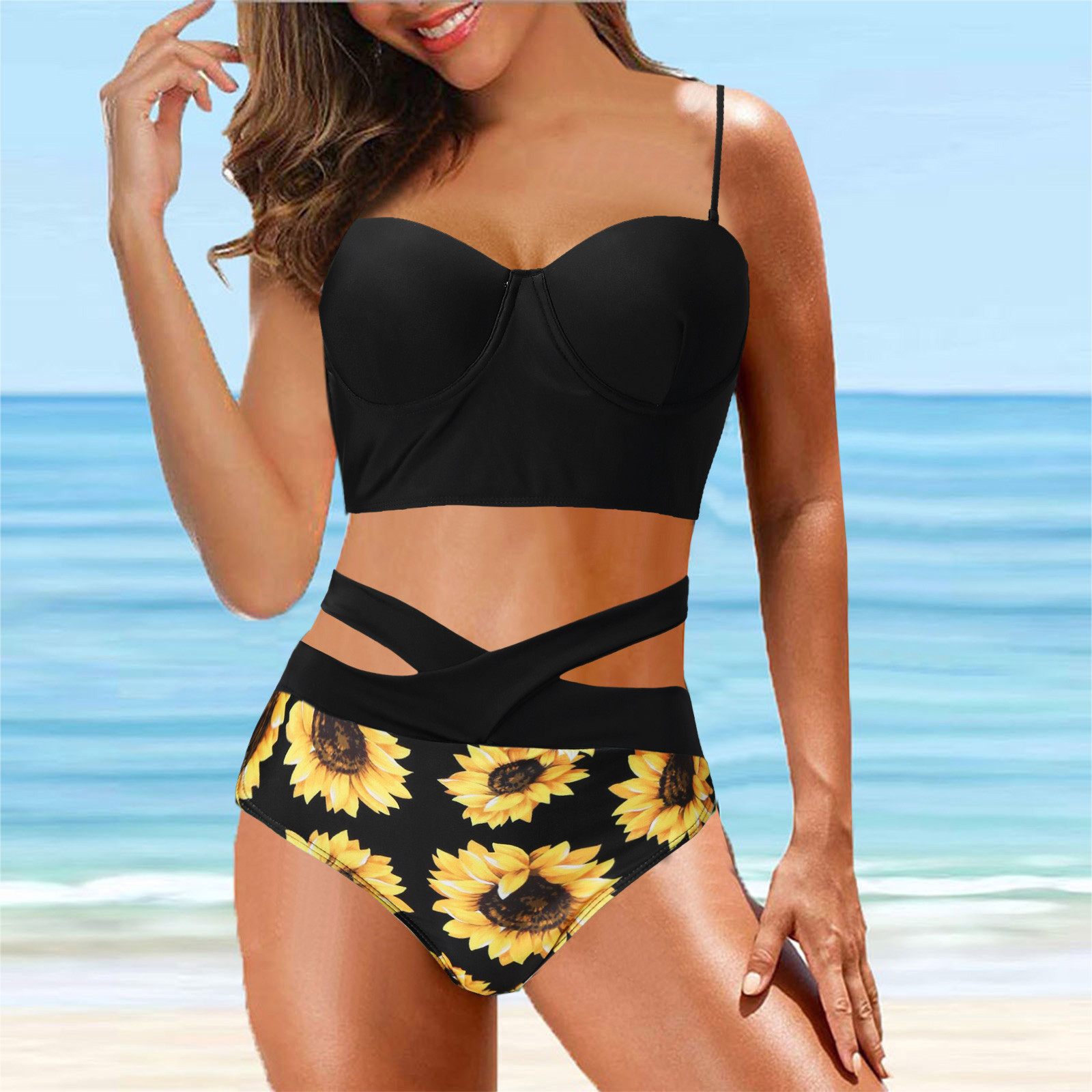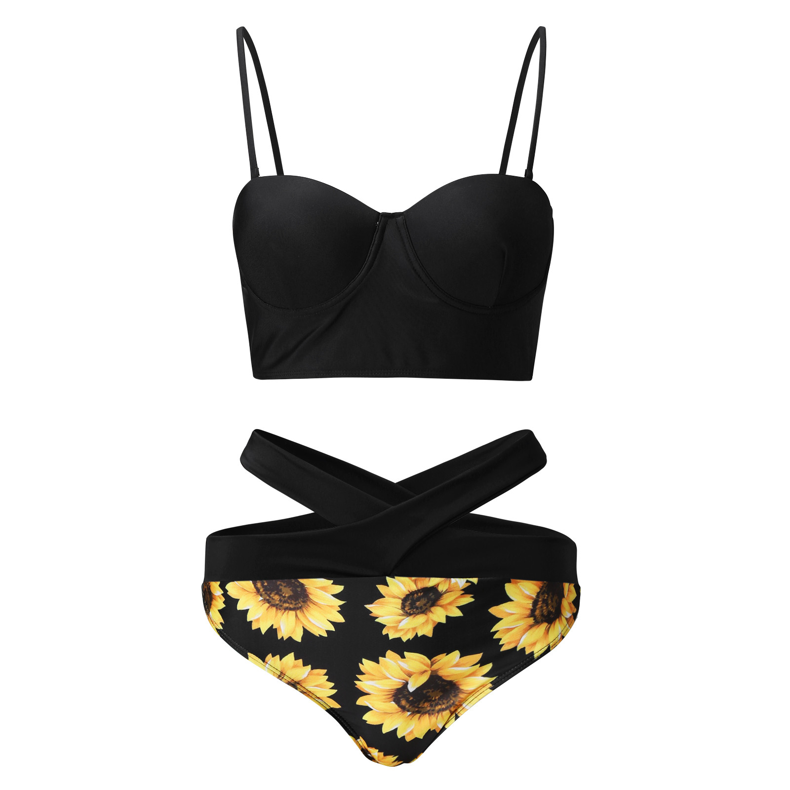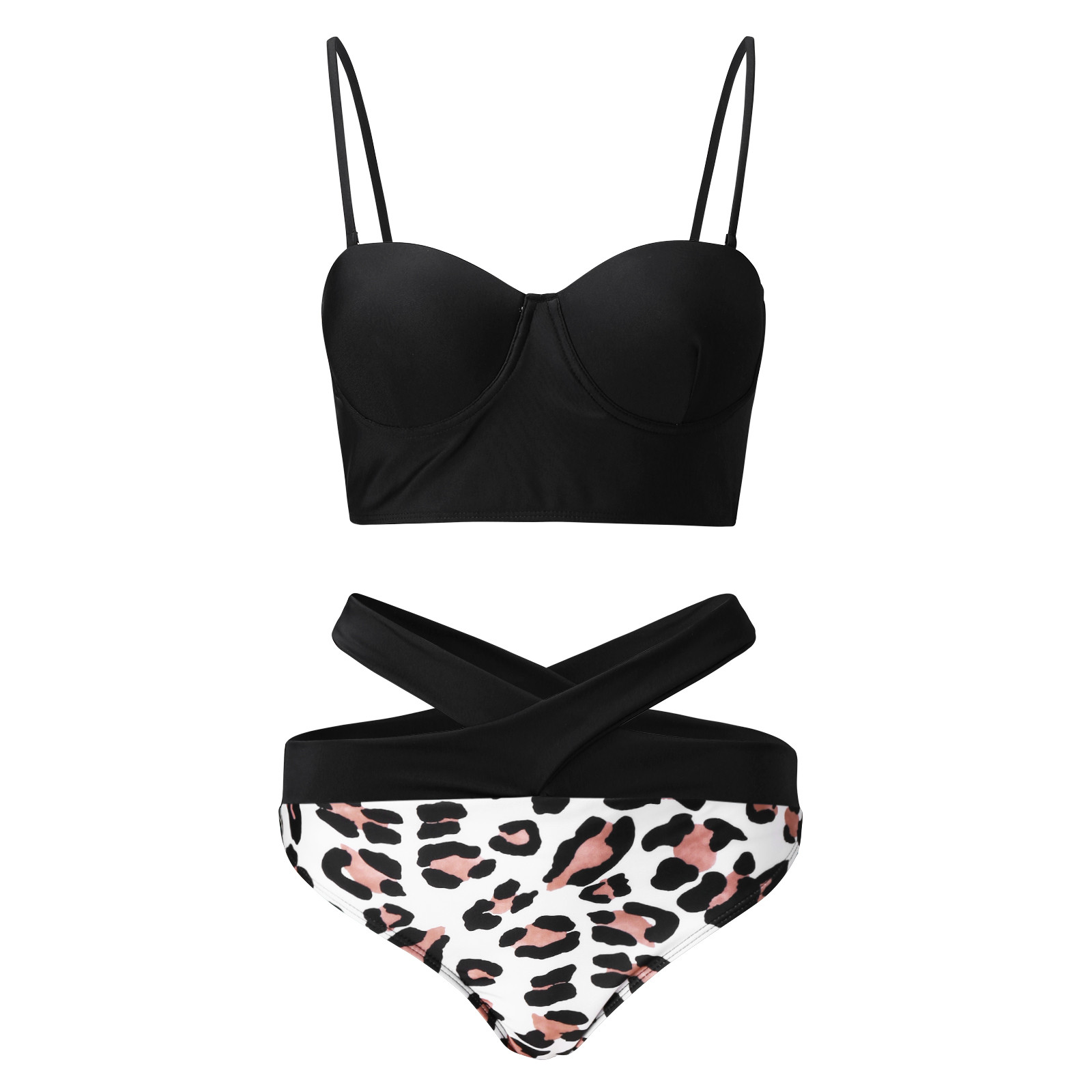 Женский купальник-бикини с обтекаемой подкладкой и завязками сбоку Верх: Широкие бретельки и жесткий топ-бикини, бюстгальтер пуш-ап, Классическая простота спереди, сексуальный v-образный вырез, регулируемые бретельки.