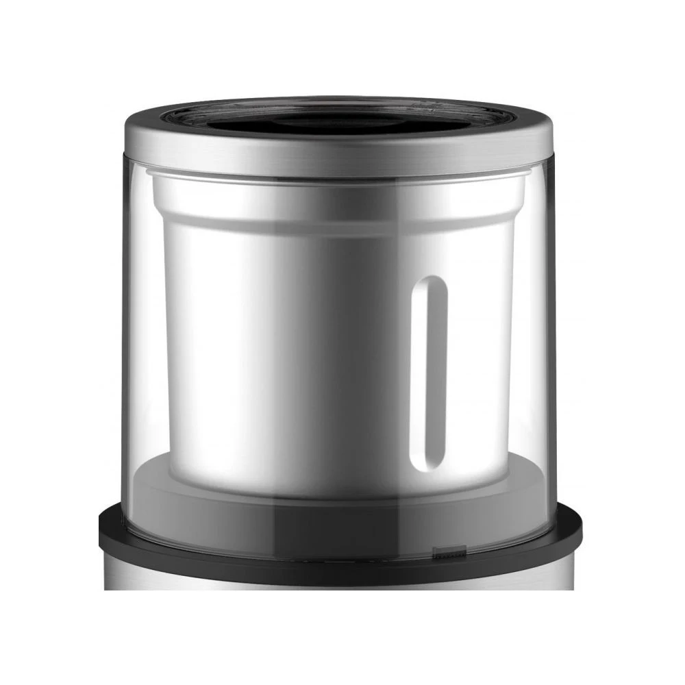 Комплектация: кофемолка, 2 съемные чаши: чаша-дробилка для кофейных зерен, чаша-измельчитель для орехов и специй, гарантийный талон, инструкция на русском языке
