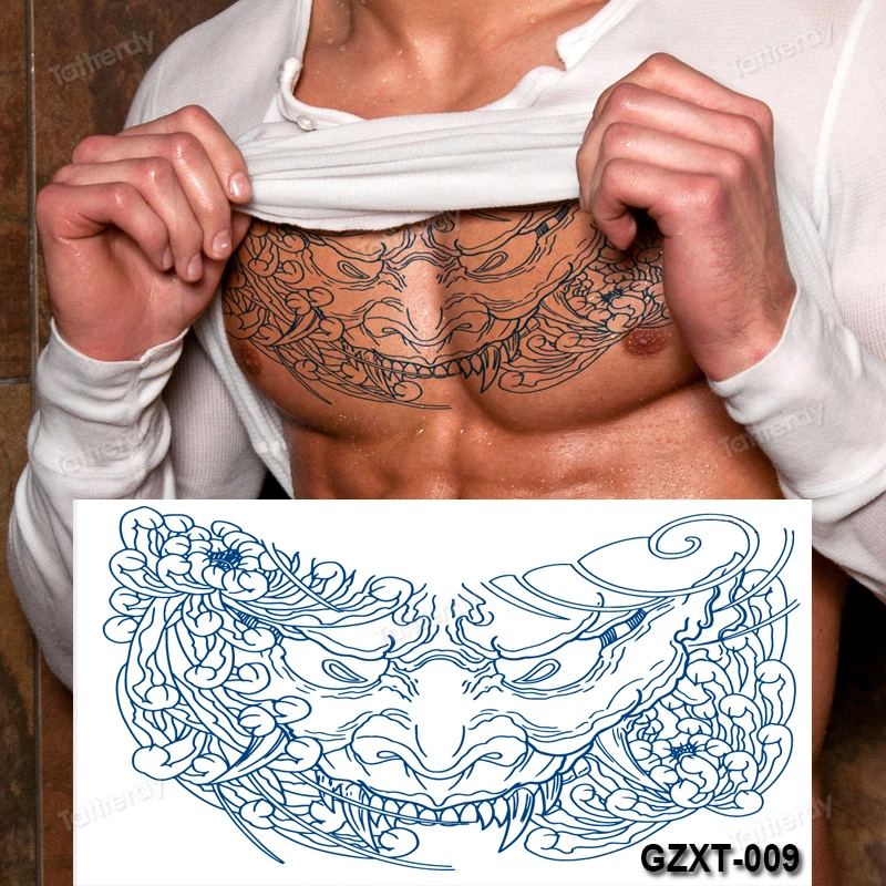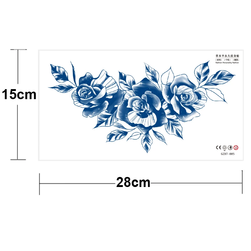 После контакта с кожей, окислительно активированный пигмент появляется сине-черный, который является темно-синим настоящим тату.