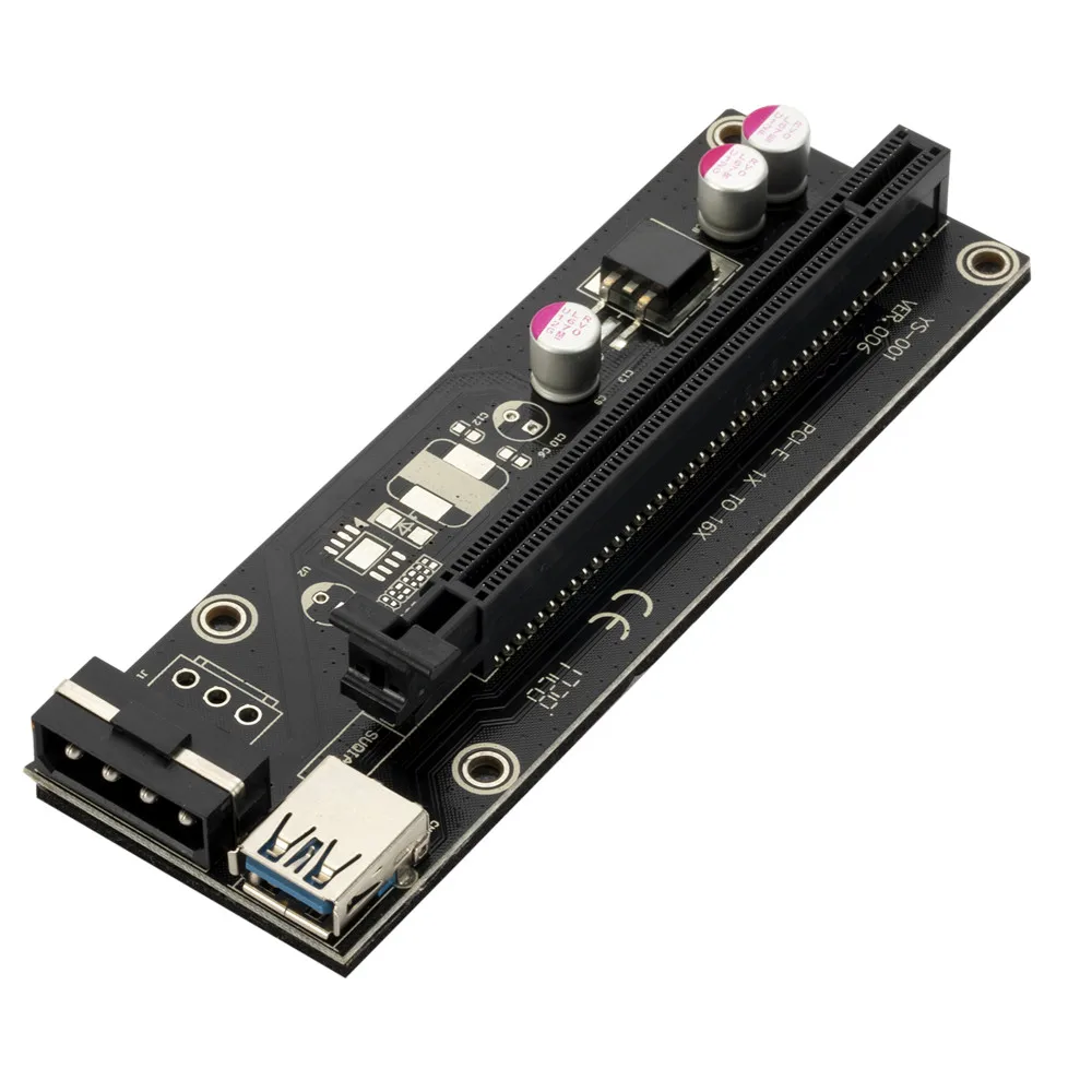 Примечание: поскольку каждая партия сырья может отличаться, плата PCIE riser может немного отличаться от внешнего вида (например, твердый конденсатор, кабель USB 3,0, модель чипа), но функция такая же.