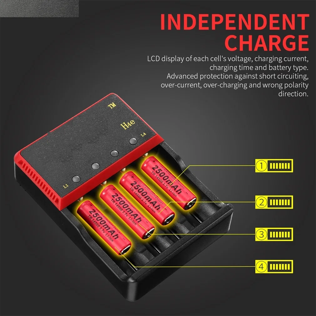 Зарядное устройство H1 с автоматической идентификацией li-ion/FiFePO4,Ni-MH, NI-CD батареи, выбор батареи FiFePO4