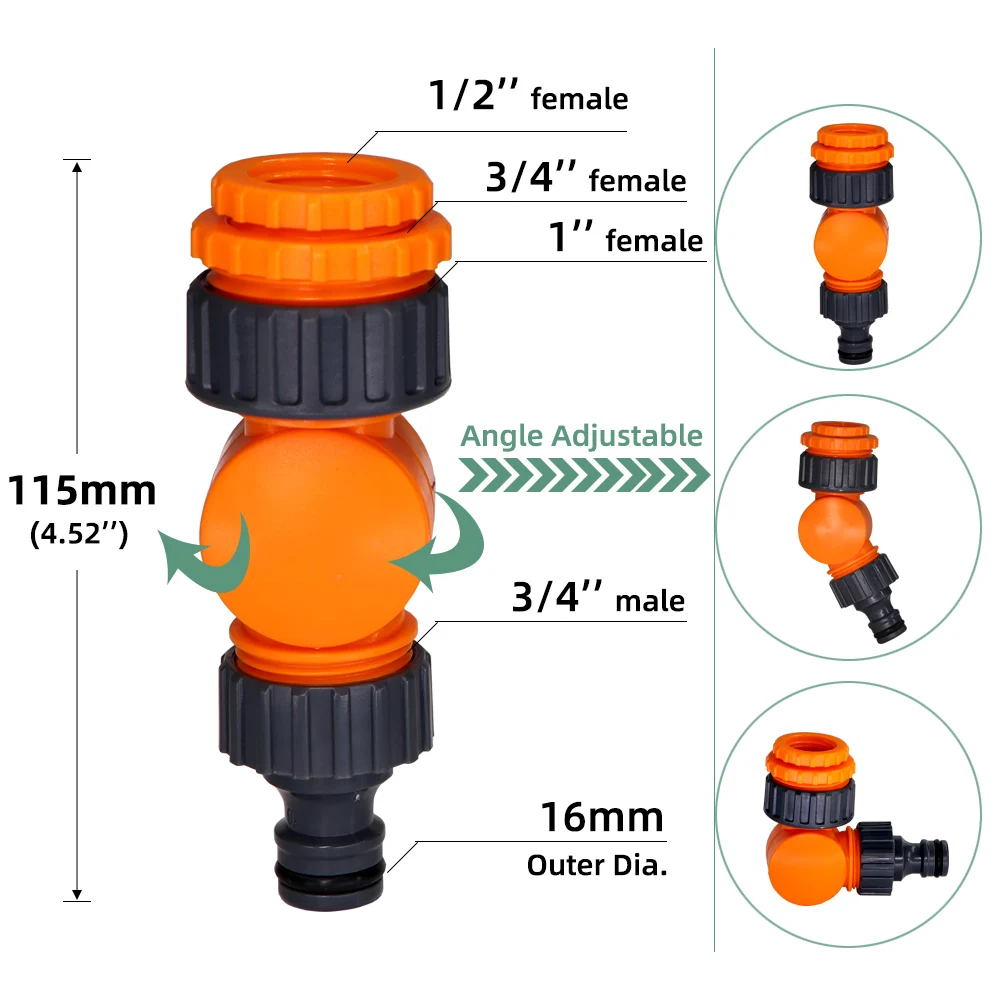 . Прочный и прочный держатель шланга обеспечивает долгий срок службы шланга из-за повреждений, вызванных скручиванием, обжимом и т. д. эргономичный адаптер садового шланга обеспечивает более гибкое движение, не повреждая шланг и трубы.