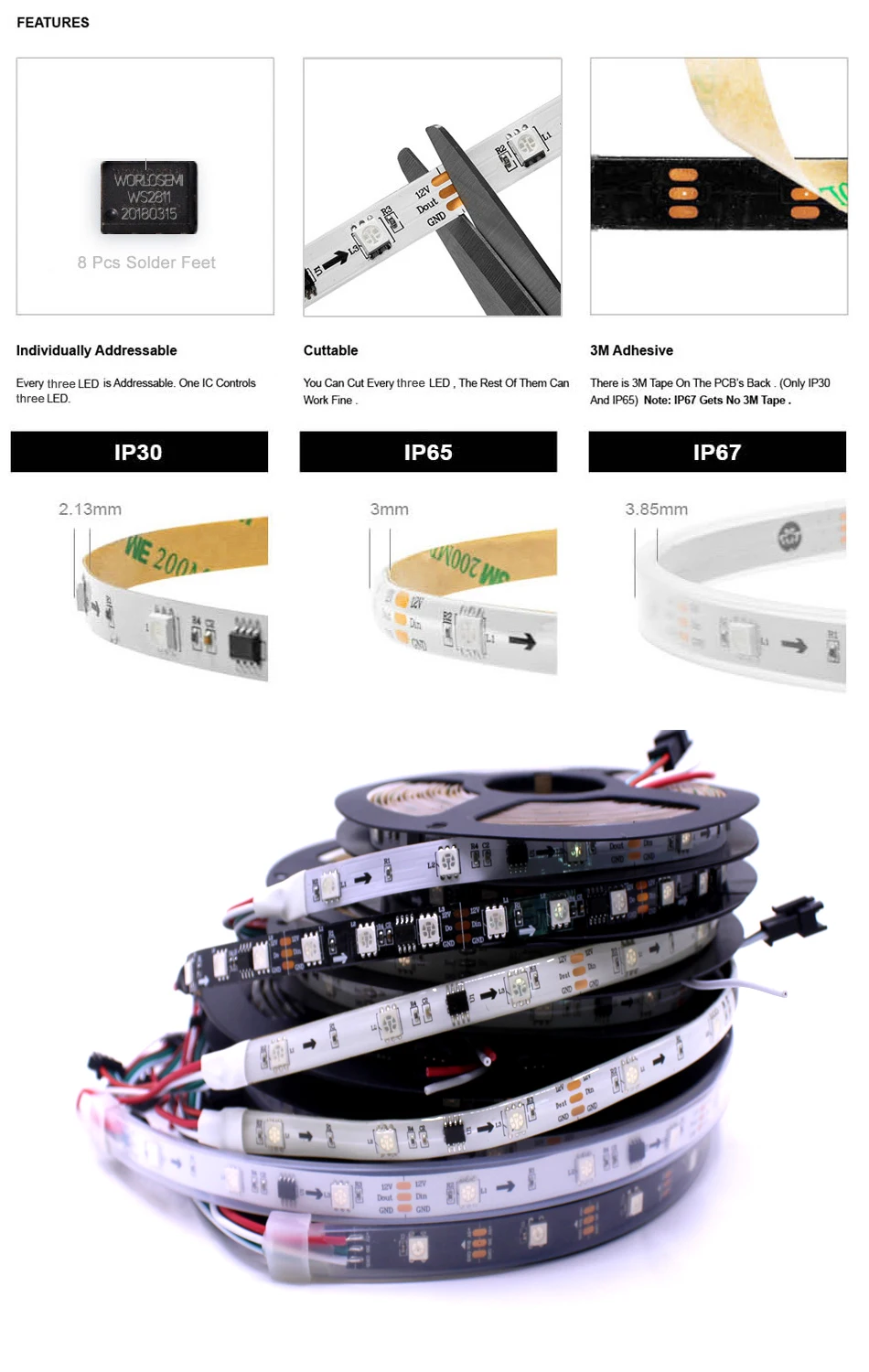 (2) IP65 --- силиконовое покрытие, легко режется, наружное использование