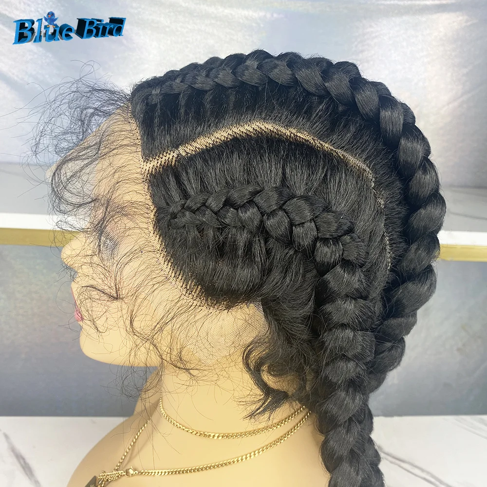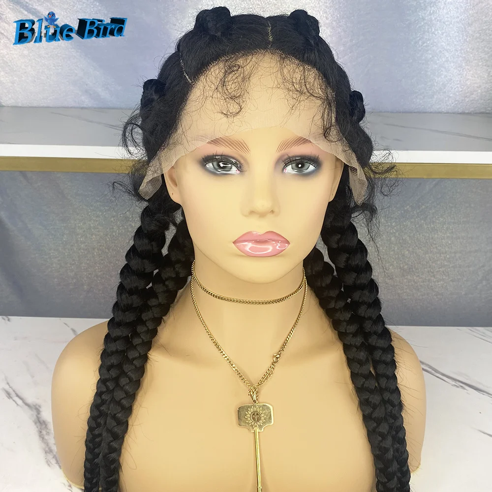 Длинные черные двойные голландские коробки плетеные Твист Синтетические косички парик с волосами младенца плетеные кружевные передние парики для черных женщин и девочек