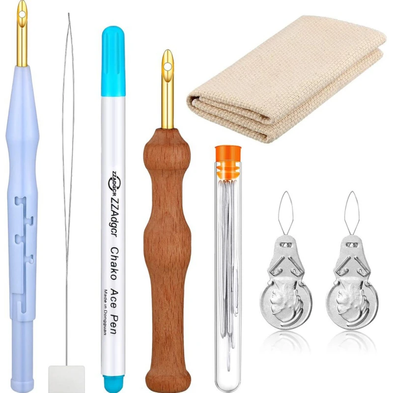 Стиль 2:2 * деревянной ручкой poke иглы Длина: 15,5 см 1 * Регулируемые пластиковые poke иглы Длина: 20,3 см 1 * водяной ликвидации ручка Длина: 15,5 см 2 * длинные нити Длина: 4,8 см 1 * ножницы Длина с крышкой: 11,8 см 1*9 шт с принтом «большие глаза» иглы Длина: 11 см 2 * иглы шт Длина: 20 см 2 * Poke Le Вышивка Ткань Длина и Ширина: 25*25 см 1 * Бамбук Вышивка стрейч Диаметр: 17 см