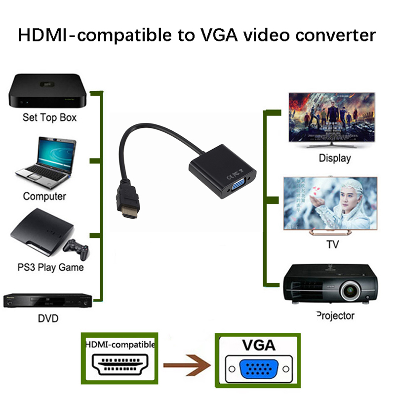 HD 1080P HDMI-Совместимость с VGA адаптер кабель подходит для Xbox PS4 компьютера ноутбука ТВ коробка Для проекционного дисплея HD ТВ