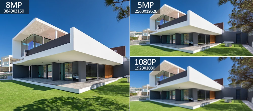 3 вида пикселей на выбор. 8MP имеет более высокую четкость, чем 1080P / 5MP. Подарите вам гладкий и потрясающий опыт в формате super HD.