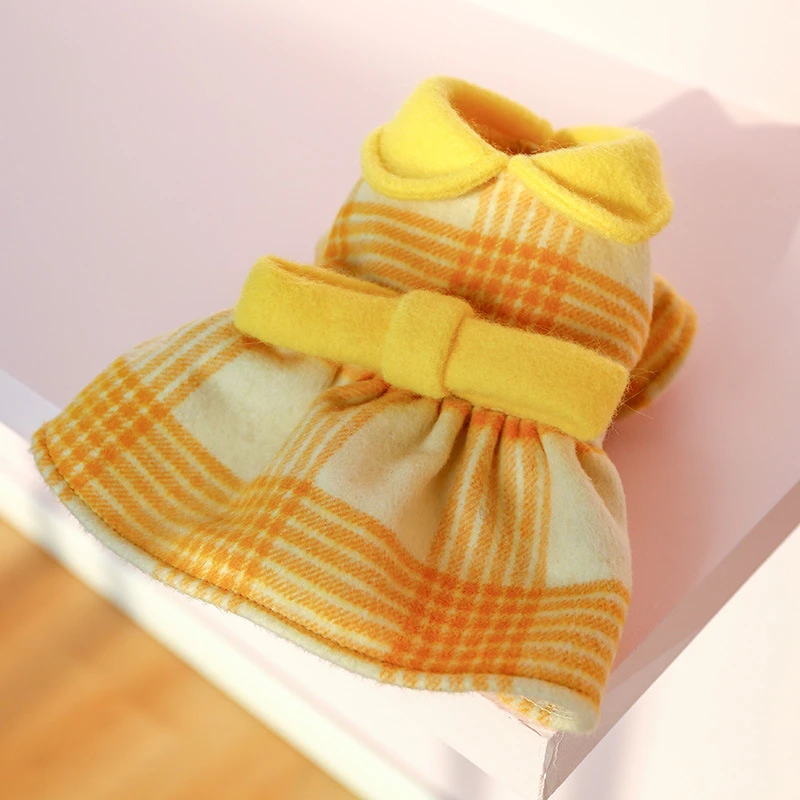 Winter Dress For Dog Princess Luxury Pet Dresses Cute Warm Woolen Dog Dress Yellow Plaid Doll Collar Cat Puppy Skirt Pet Clothes