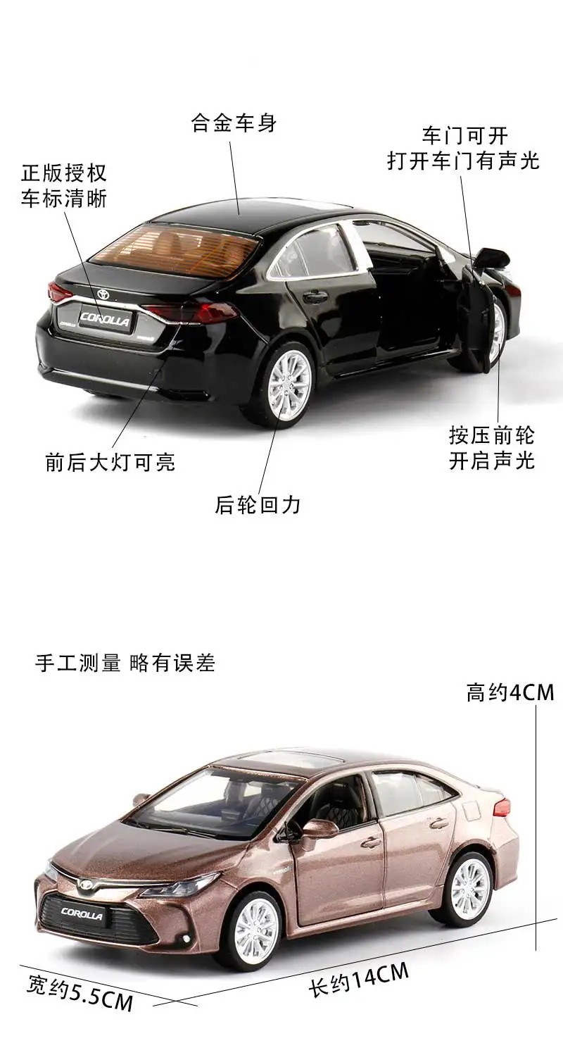 1/33 Toyoto Corolla сплав семейная модель автомобиля литье под давлением игрушка две двери открывающийся звуковой светильник Коллекционная модель