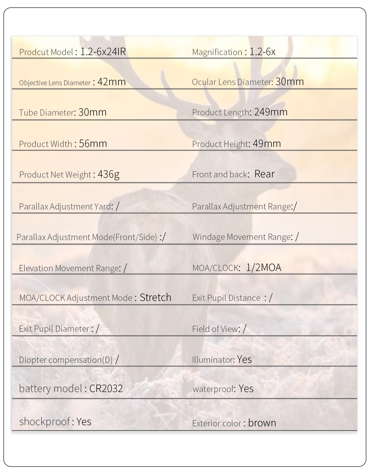 Приращение регулировки: 1/2MOA;