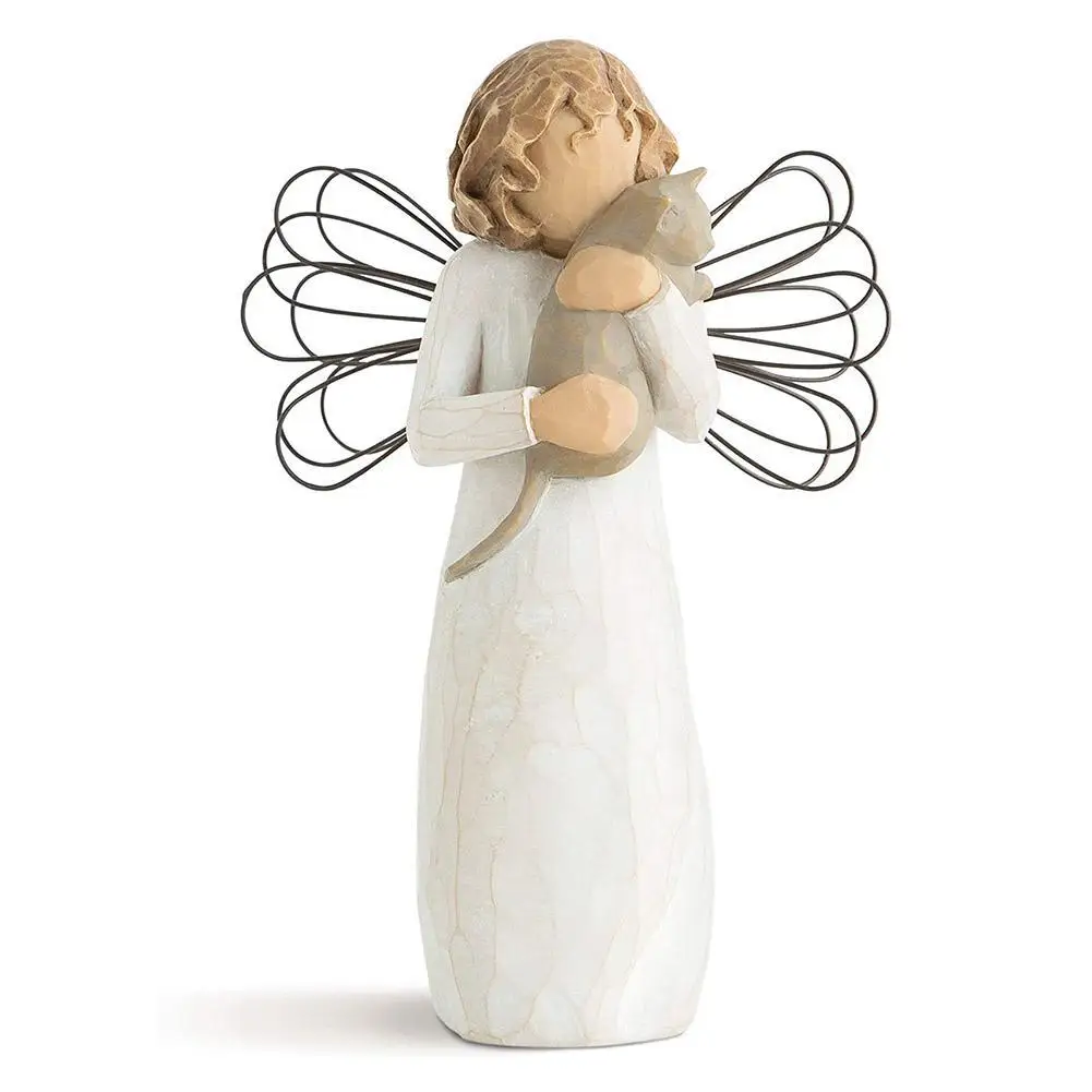 Смоляная Статуя Ангела, собаки, цветка, работа, День Святого Валентина, День матери, Подарочная скульптура для дома, сада, рабочего стола, декоративная статуэтка