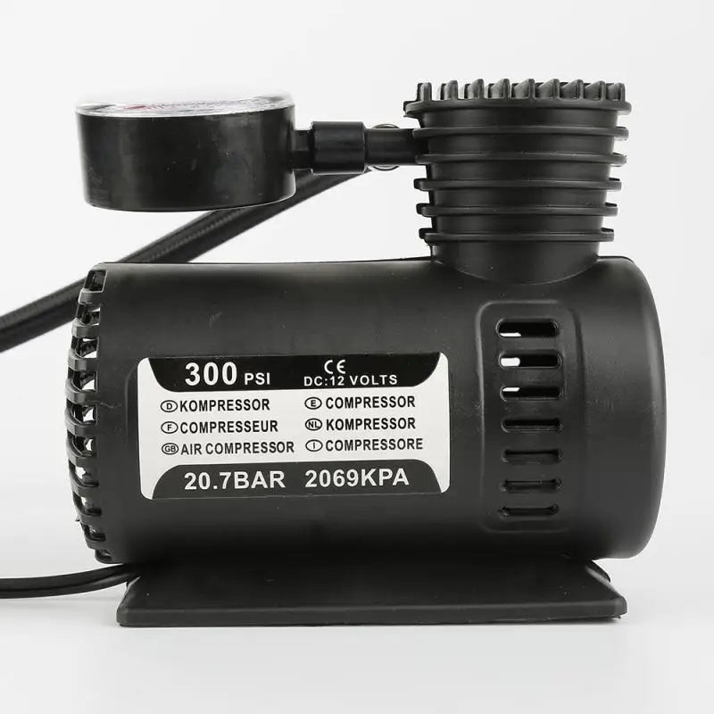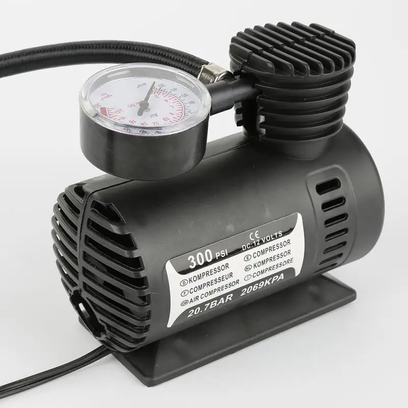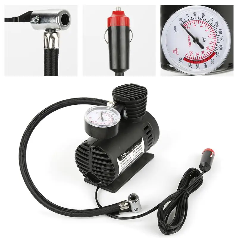 This type of ultra portable compressor can be plugged into a 12V car system for on-the-go repairs or inflation.