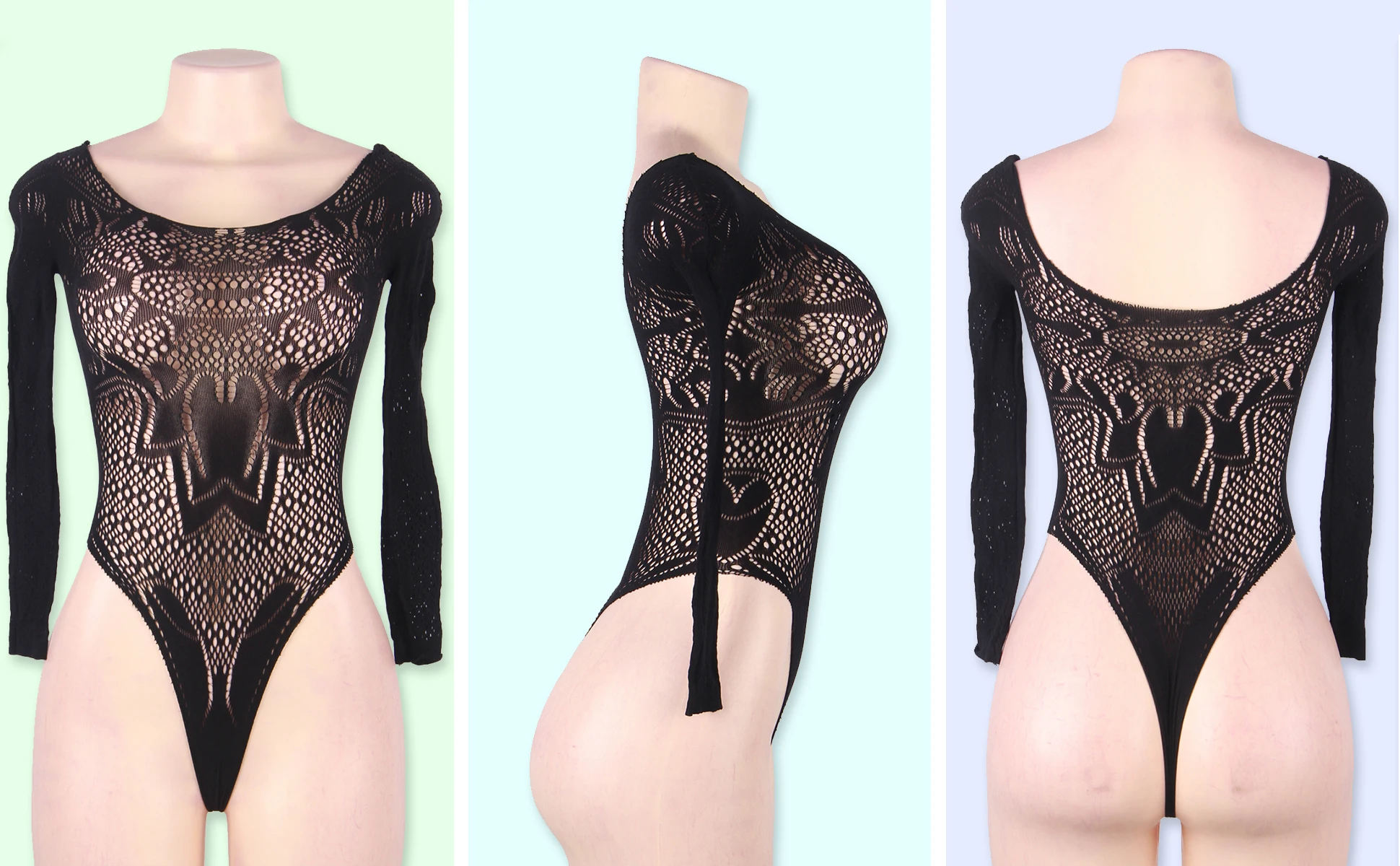 Comeonlover боди с длинным рукавом для женщин сексуальный наряд черное кружевное прозрачное дышащее Сетчатое нижнее белье с открытыми плечами