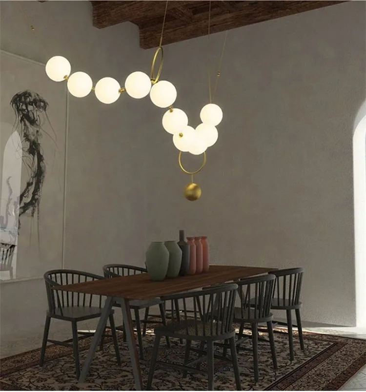 Современный Witte Glazen Bol Hanglamp Voor ресторанный Hal Creatieve Ketting Ontwerp Decro Verlichtingsarmaturen Met 8 Lampen