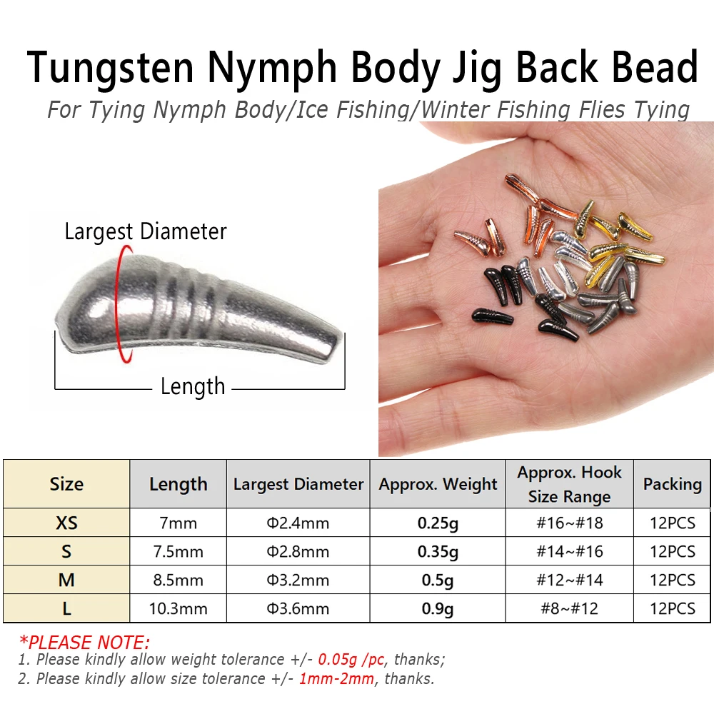 ------ Предварительно сформированные вольфрамовые тела изготовлены из высококачественного вольфрамового материала, они были снабжены слотом на нижней стороне корпуса, чтобы обеспечить Легкое крепление к крюку. Позвольте вашей nymph быстро утонуть и позвольте маленьким мушкам с большим весом быть завязанными. Легко завязывать и устранять необходимость в бисерной и проволочной обертке для головы и тела Нимфы завязывания. Скульптурный дизайн означает, что вытягивание мух быстрее и требует меньше материалов для заполнения тела.