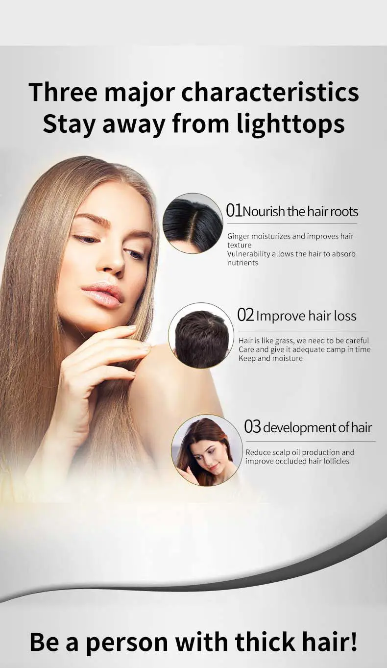 100% натуральные ингредиенты: имбирь, женьшень, многоцветность полигонама и масло виноградных косточек, которые эффективно предотвращают выпадение волос, обеспечивая питание корня волос, восстанавливая поврежденные волосы, восстанавливая жизненную силу волос