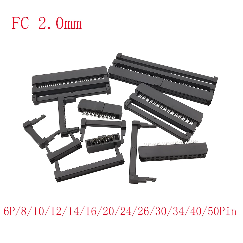 10 шт. FC 2,0 мм Шаг IDC разъем двухрядный женский коннектор 6P/8/10/12/14/16/20/24/26/30/34/40/50 Pin для 1,0 мм плоский кабель