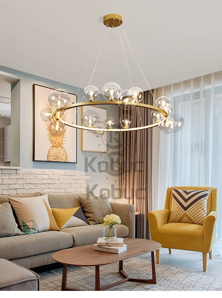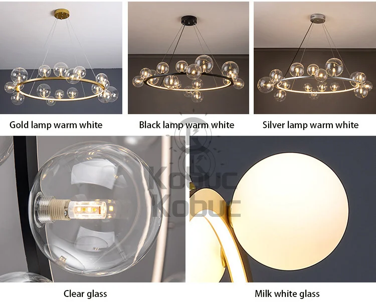 Kobuc современный прозрачный/белый стеклянный пузырьковый светодиодный подвесной светильник золотистого/хромового/черного цвета для гостиной спальни круглое кольцо люстра освещение