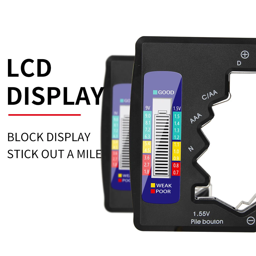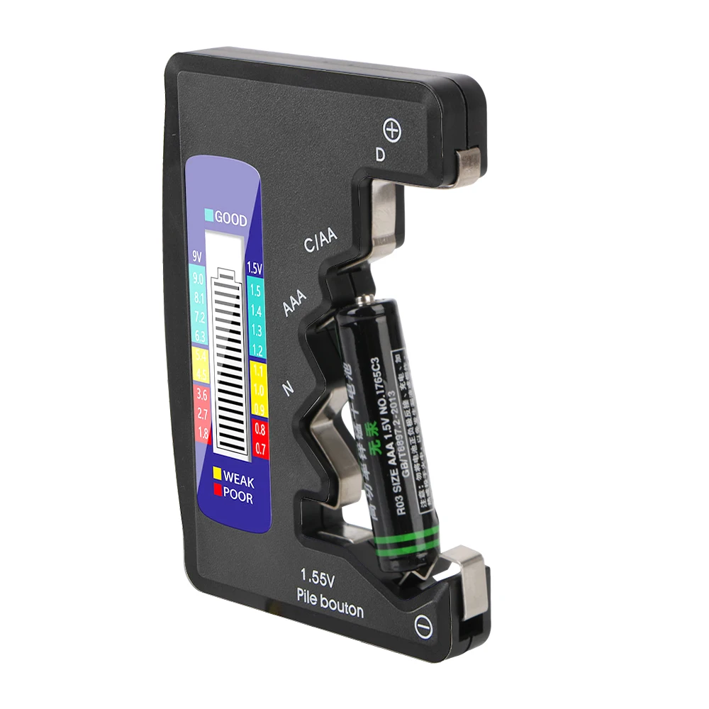 Широкий спектр тестов включает Тип C, тип AA, AAA, тип D, тип N, 9 В (6f22) и кнопочную ячейку 1,55 в.