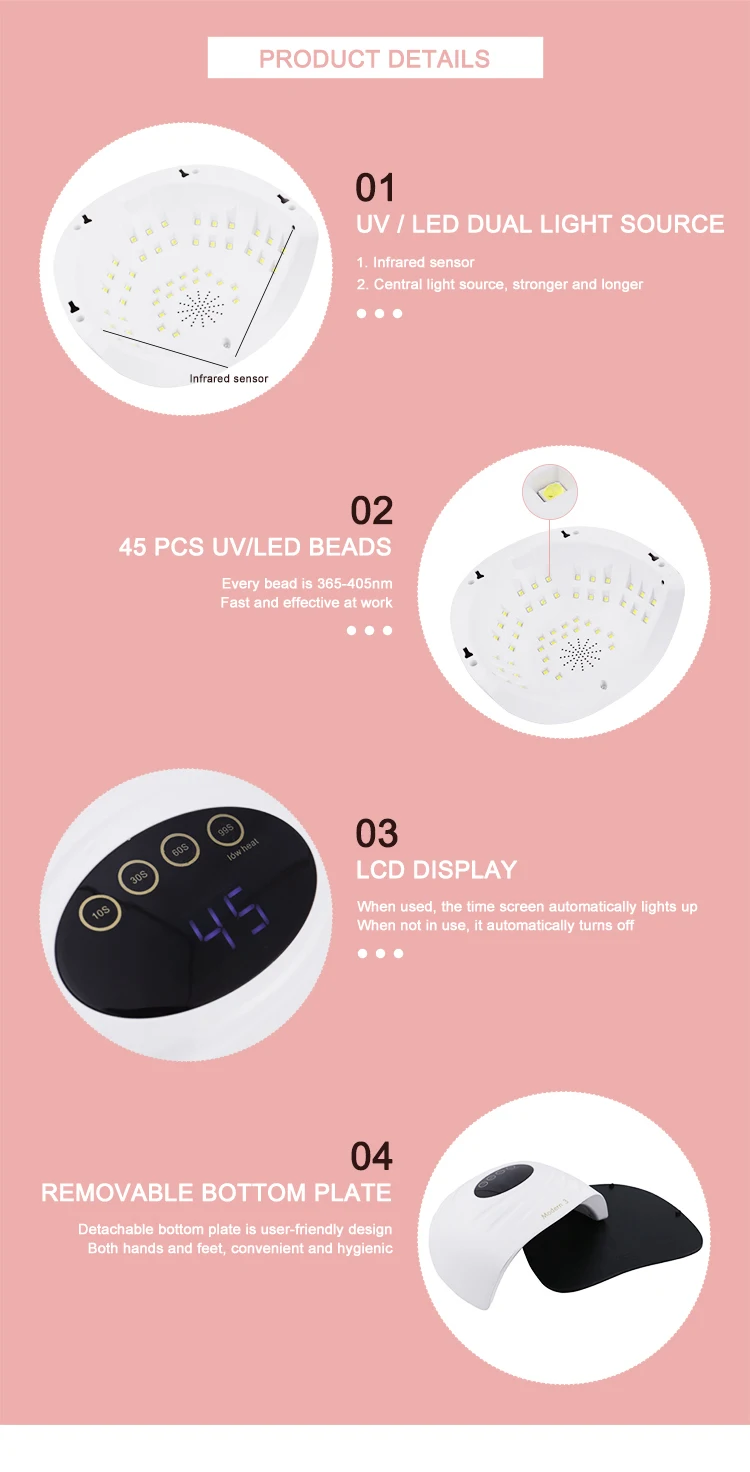Светодиодный светильник подходит для всех фототерапевтических клеев, используемых в нейл-Арте.
