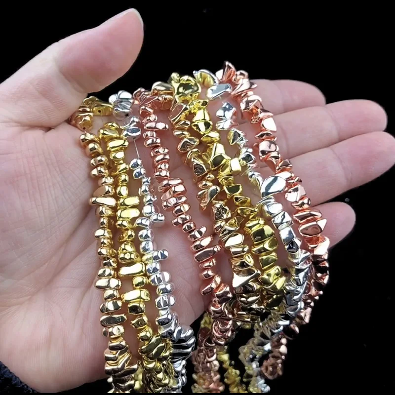 Розовое золото, серебро, гематит, неровный гравий, натуральный камень, 4 ~ 10 мм, свободные бусины для изготовления ювелирных изделий, браслет, DIY аксессуары