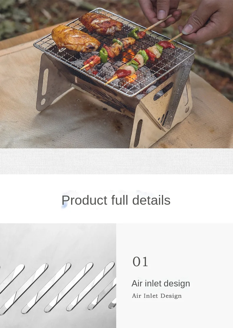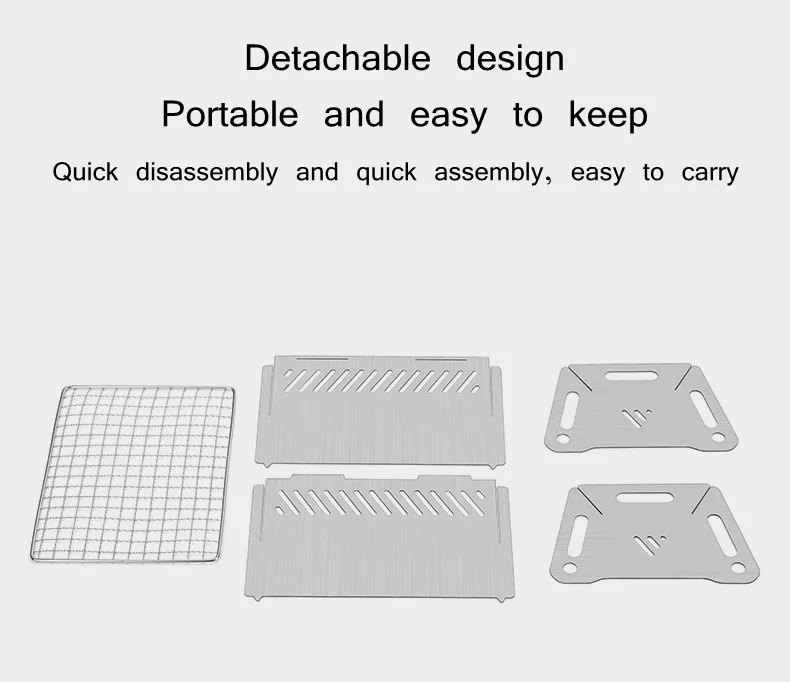2. Небольшой размер и легко носить с собой. Контейнер с древесным углем оснащен вентиляционными отверстиями для обеспечения воздушного потока и рассеивания тепла, ускорения скорости горения и создания идеального впечатления от барбекю.