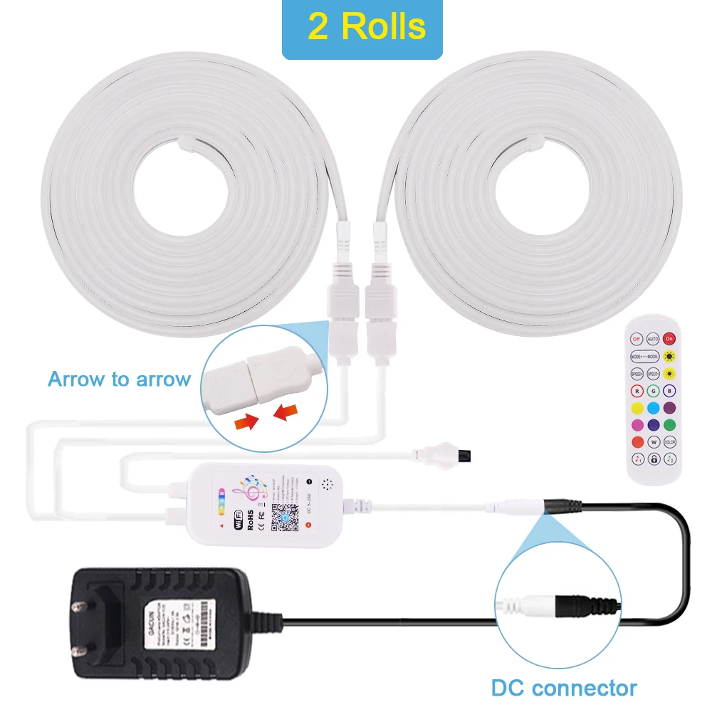 2. Подключите контроллер и светодиодную ленту и включите питание.