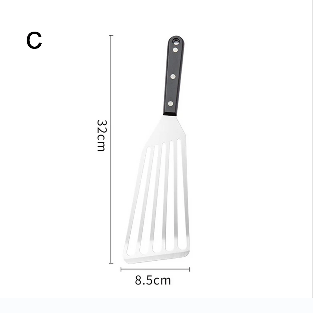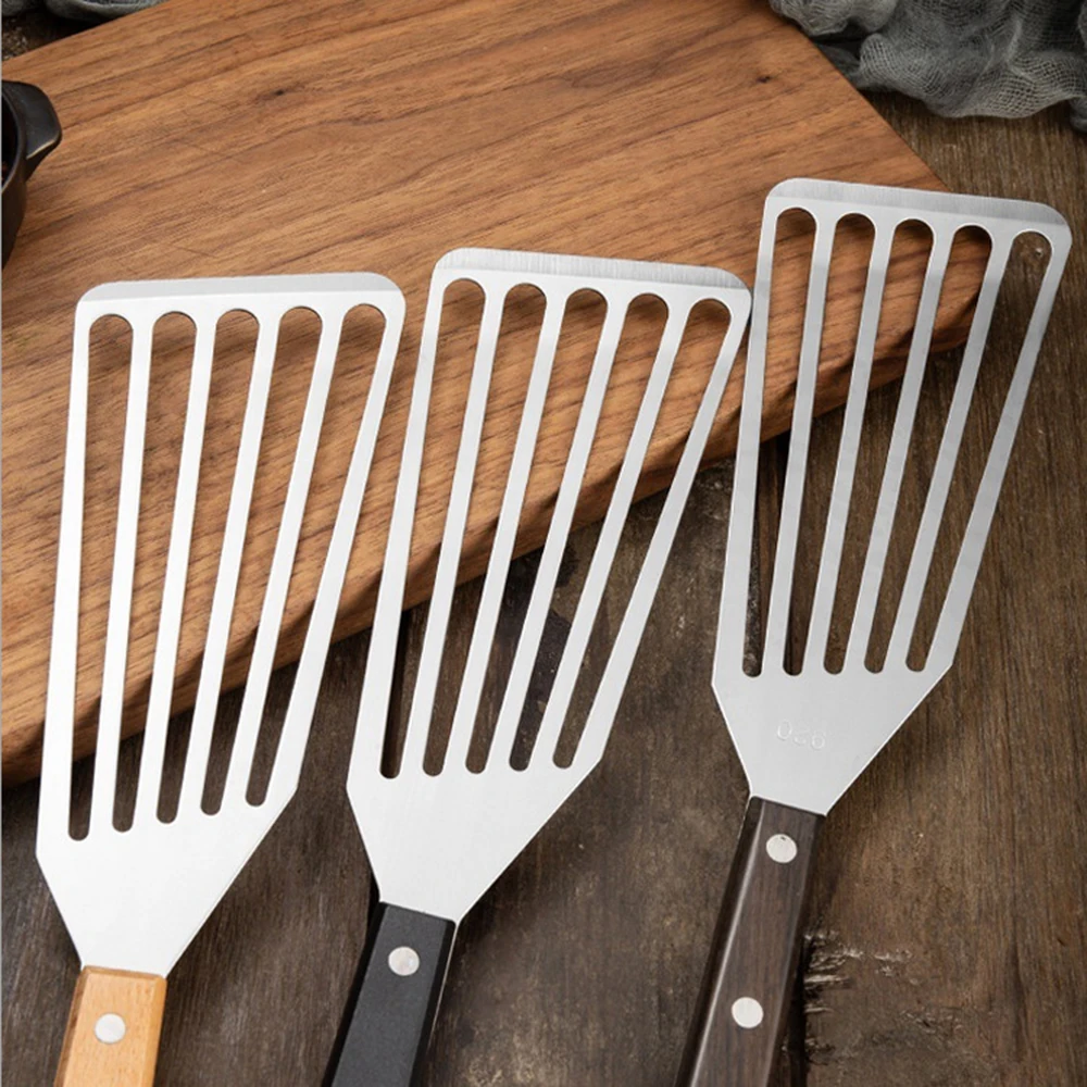 3. Нержавеющая сталь сковорода Лопата дизайн, удобная утечка супа или масла. Его плоская головка позволяет легко поднять нежную еду, не повреждая ее, в то время как ее щелевая поверхность сливает жир и помогает высвобождать еду.