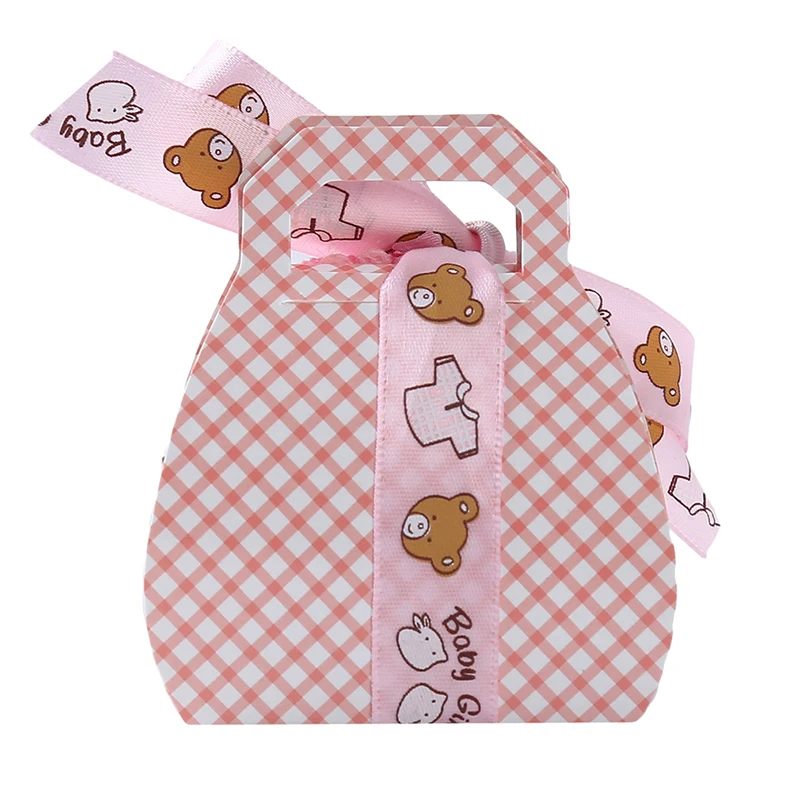 12 шт./лот, бумажный свадебный подарок в форме медведя для крещения, вечерние коробки для детского душа, изящная коробка конфет с нагрудником и лентами