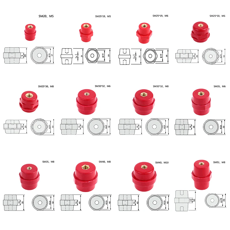 SM высокопрочные закрученные изоляторы, низкое напряжение нулевой ряд изолированные колонны распределения питания шкаф заземляющий медный сиденье